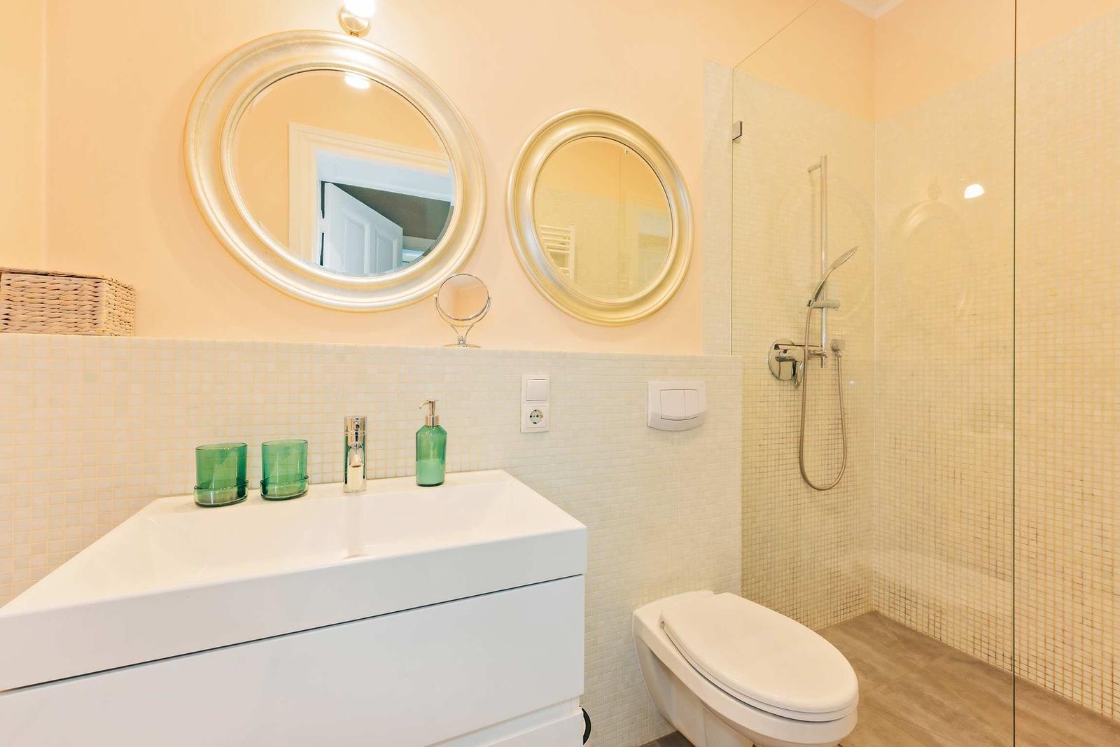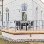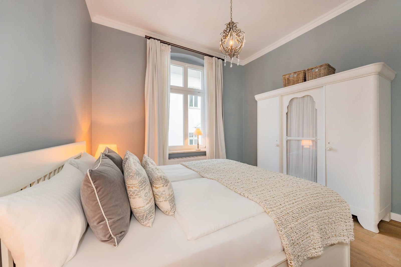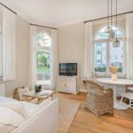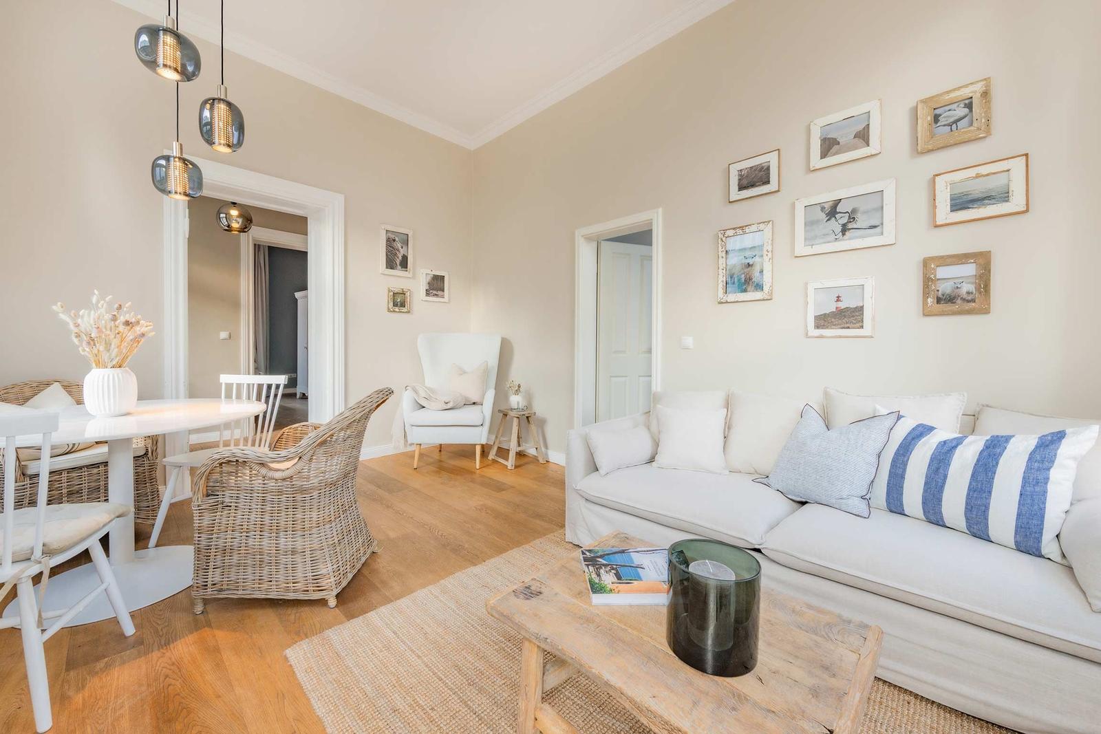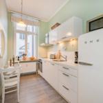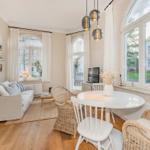 Die Ferienwohnung Nummer 14 im Schloss Hohenzollern beeindruckt durch ihren stilvollen Rückzugsort in der charmanten Bäderarchitektur von Ahlbeck. Mit einer großzügigen Fläche von 72 m² bietet die Wohnung einen harmonischen Mix aus historischem Flair und modernem Wohnkomfort. Zwei geschmackvoll eingerichtete Schlafzimmer sind mit komfortablen Betten (1,80 m x 2,00 m und 1,60 m x 2,00 m) sowie großen Kleiderschränken ausgestattet. Die separate, voll ausgestattete Küche ermöglicht die Zubereitung von Köstlichkeiten, während der Wohnraum mit einer bequemen Couch und einem Flat-TV mit Streaming-Zugang zu gemütlichen Abenden einlädt. Das moderne Bad überzeugt mit stilvollen Materialien und einer bodengleichen Dusche. Gemeinschaftlich nutzbare Waschmaschine und Trockner sowie ein abschließbarer Fahrradkeller stehen zur Verfügung, ideal für aktive Gäste. Ein kostenfreier WLAN-Zugang ergänzt das Angebot.