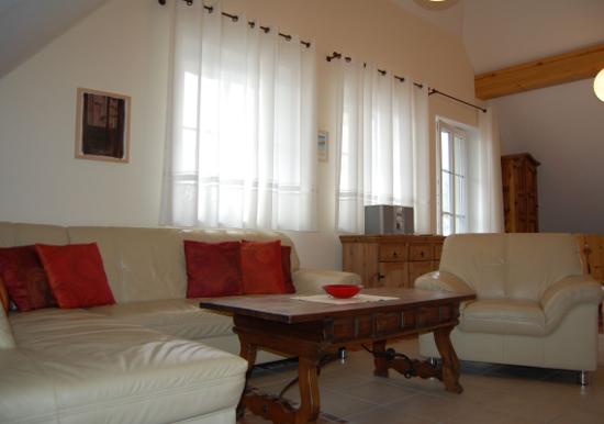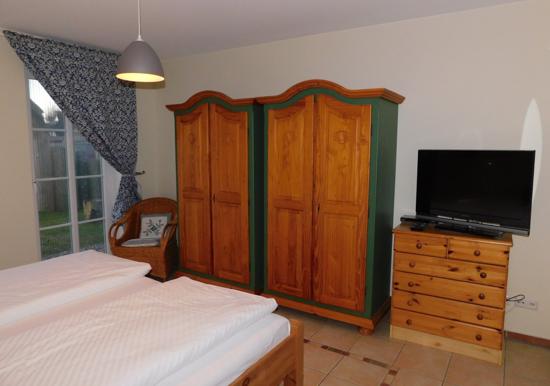 Die Ferienwohnung bietet eine moderne und komfortable Ausstattung, die ideal für entspannende Urlaube ist. Sie umfasst zwei Schlafzimmer, eines mit einem Doppelbett und das andere mit zwei Einzelbetten. Das großzügige Badezimmer verfügt über ein Fenster, einen Kosmetikspiegel und eine Fußbodenheizung. Die offene Küche ist komplett ausgestattet mit einem Elektro-/Gasherd, Backofen, Geschirrspüler, Kühlschrank, Mikrowelle, Kaffeemaschine, Wasserkocher und Toaster. Ein Esstisch lädt zu gemeinsamen Mahlzeiten ein. Für Unterhaltung sorgen eine HiFi-Anlage, ein TV sowie Brettspiele. WLAN ist verfügbar, und die Wohnung ist allergikergeeignet. Zudem stehen ein Parkplatz, Garderobe und Fliegengitter zur Verfügung. Ein gemütlicher Sessel rundet das Raumangebot ab. Rauchmelder gewährleistet die Sicherheit. Hier findet jeder die ideale Umgebung für eine erholsame Auszeit.