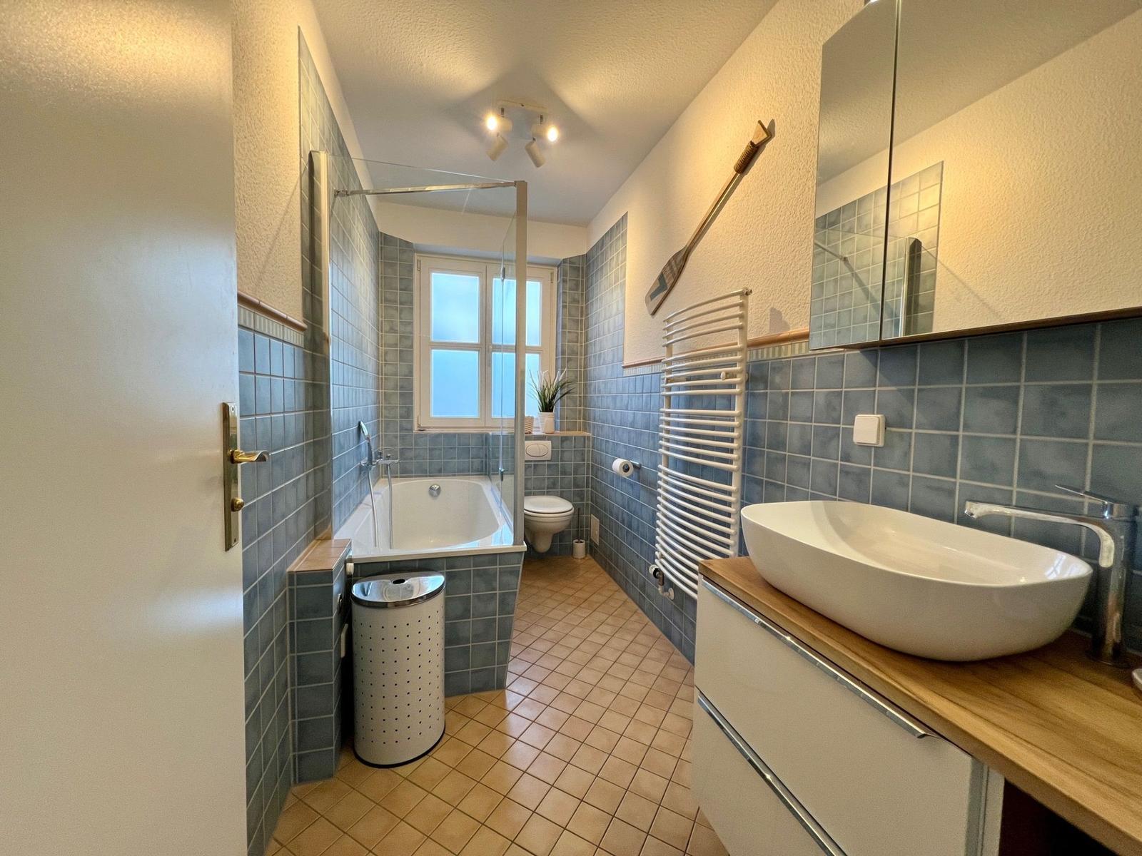 Die Ferienwohnung bietet eine einladende Atmosphäre mit einem gut durchdachten Raumkonzept. Sie umfasst ein Schlafzimmer mit einem komfortablen Doppelbett und ein Badezimmer, das mit einer Badewanne und einem Fenster ausgestattet ist, um für frische Luft zu sorgen. Die offene Küche ist ideal für kulinarische Experimente und verfügt über moderne Geräte wie einen Elektro-/Gasherd, Backofen, Mikrowelle, Geschirrspüler und Kühlschrank. Für den perfekten Start in den Tag stehen eine Kaffeemaschine und ein Toaster bereit.