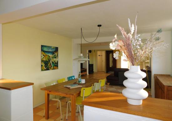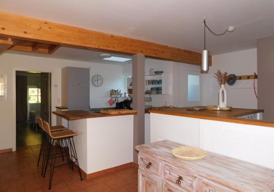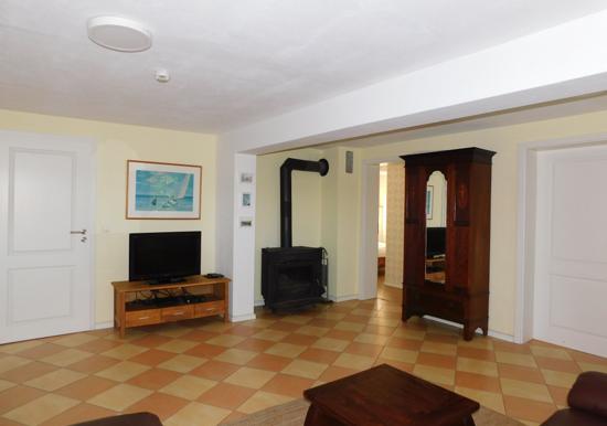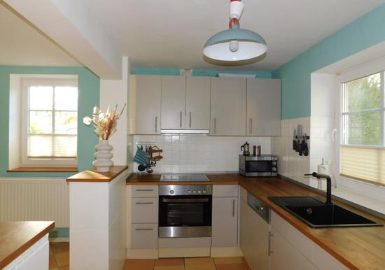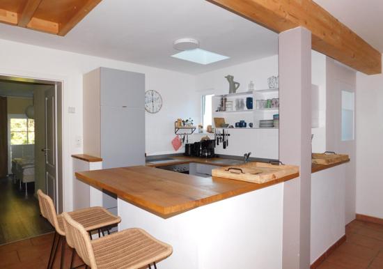 Die offene Küche lädt zum gemeinsamen Kochen ein und ist mit einem Elektro-/Gasherd, Backofen, Geschirrspüler, Mikrowelle, Kühlschrank, Gefriermöglichkeit, Kaffeemaschine, Toaster und Mixer komplett eingerichtet. Der Wohnbereich ist mit einem einladenden Sofa, einem TV, einer HiFi-Anlage und einem Kamin ausgestattet. WLAN ist ebenso vorhanden, und die gesamte Wohnung ist allergikergeeignet.