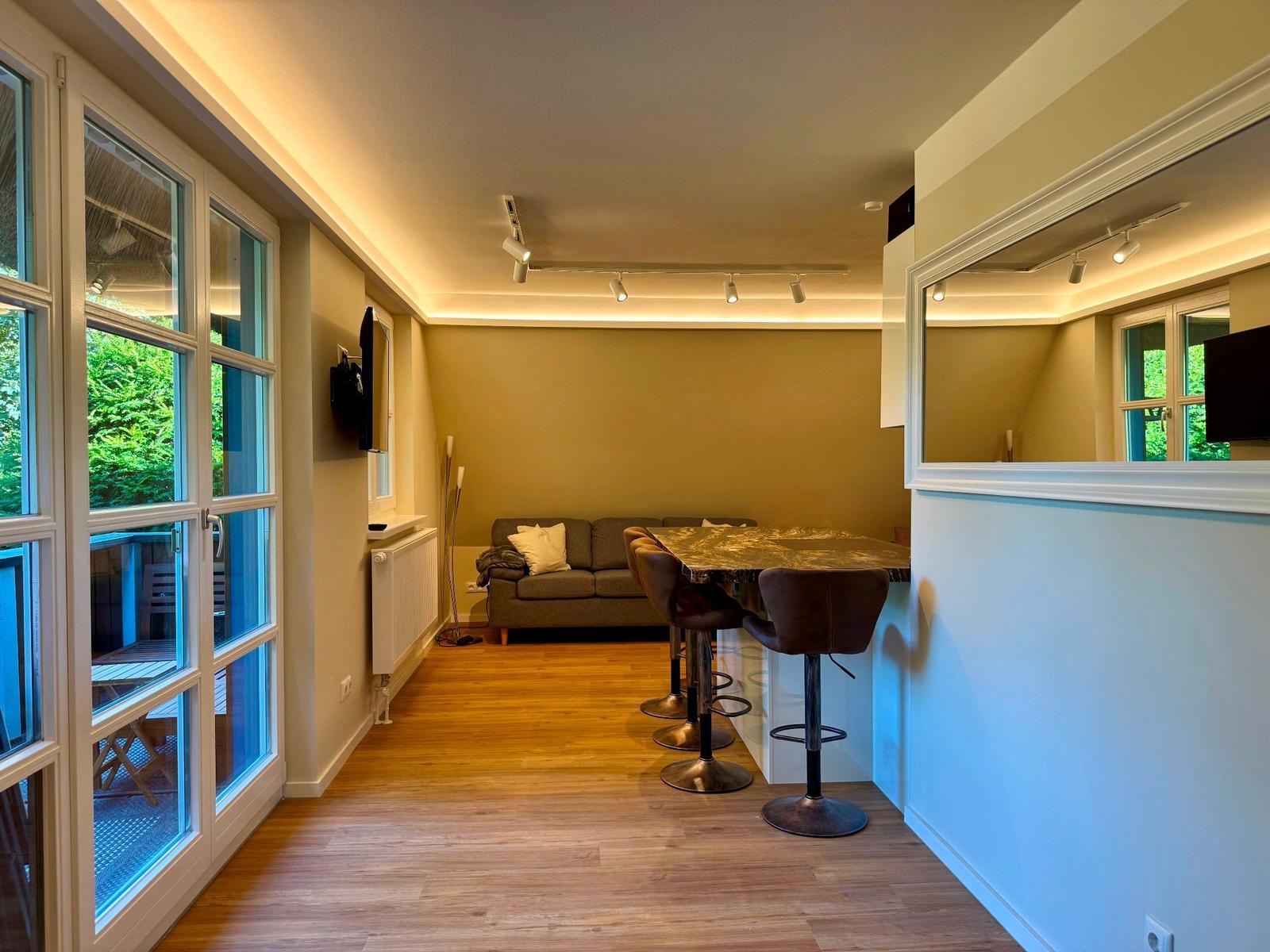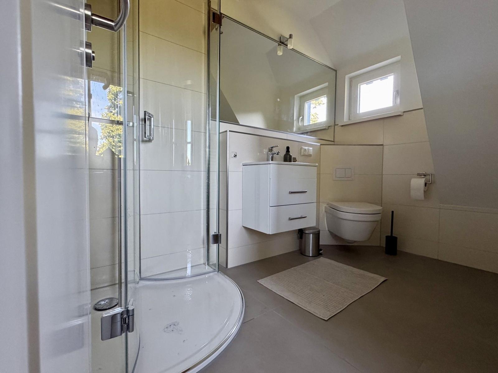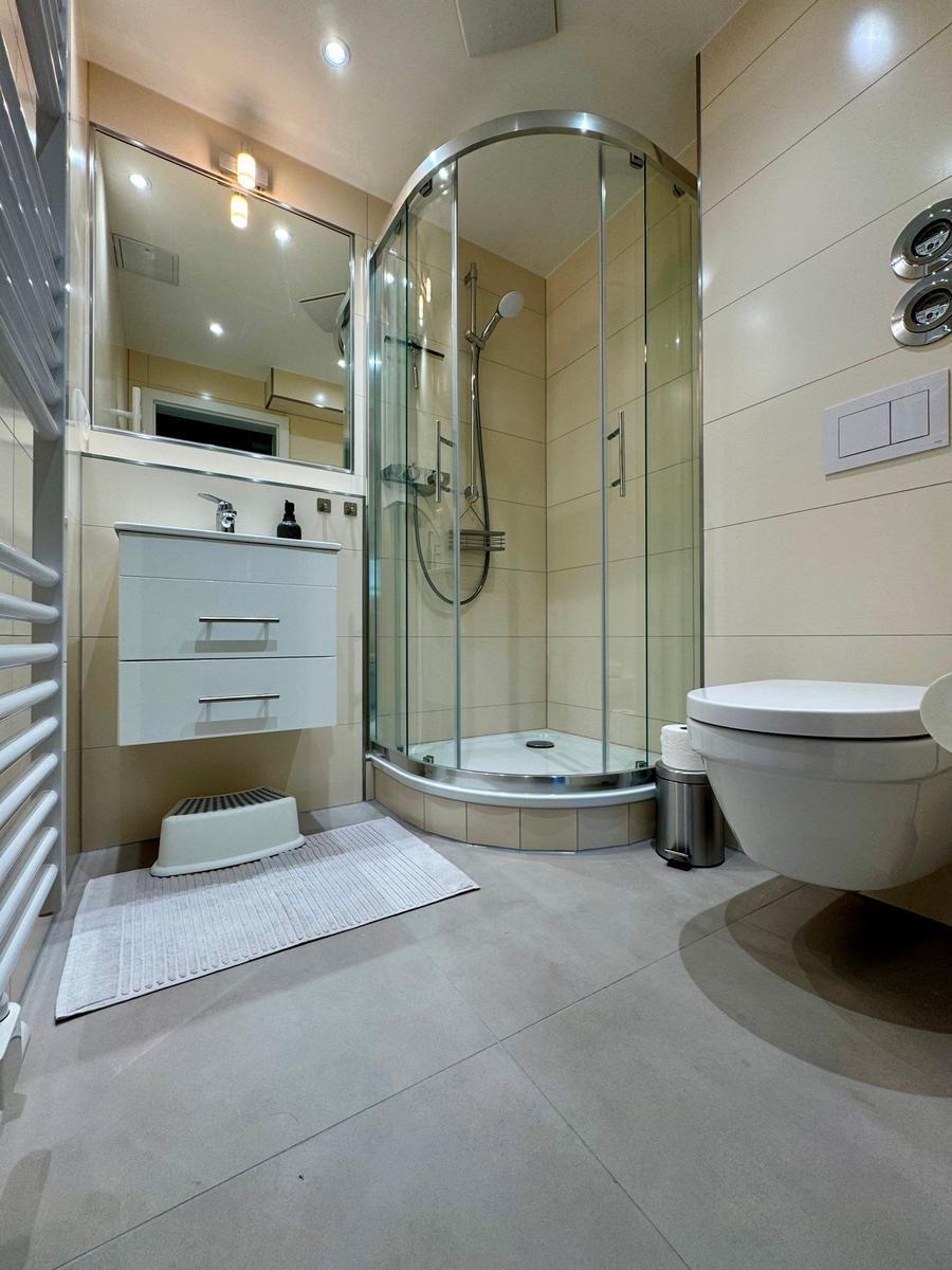 Ein komfortables Badezimmer mit bodengleicher Dusche und ein zusätzliches Duschbad sichern ungestörte Wohlfühlmomente. Für Unterhaltung sorgen HiFi-Anlage und TV. Die Wohnung ist allergikergeeignet und bietet mit WLAN Internetzugang.