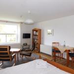Das Vermittlungsportal präsentiert die Ferienwohnung "Meeresrauschen", ein charmantes Einraumapartment in einem typischen Reetdachhaus in Ahrenshoop. Der Außenbereich umfasst eine Süd-Terrasse, die mit Gartenmöbeln ausgestattet ist und einen einladenden Ort zum Entspannen bietet. Hier können Gäste die lauen Sommerabende beim Sonnenuntergang genießen oder frische Luft schnappen. Die Lage ist optimal, nur 50 Schritte bis zum feinen Ostseestrand, ideal für ausgedehnte Spaziergänge oder das Beobachten des täglichen Farbenspiels der Natur. Die Nutzung des Gartens ermöglicht zusätzlich Erholung im Freien. Gemeinschaftliche Einrichtungen, wie ein PKW-Stellplatz, stehen zur Verfügung. Gäste werden darauf hingewiesen, dass die Wohnung in der Zeit vom 04.01. - 24.03. nicht vermietet wird. Die zentrale und ruhige Lage sowie die kurze Entfernung zu Cafés und Restaurants runden das Angebot ab.