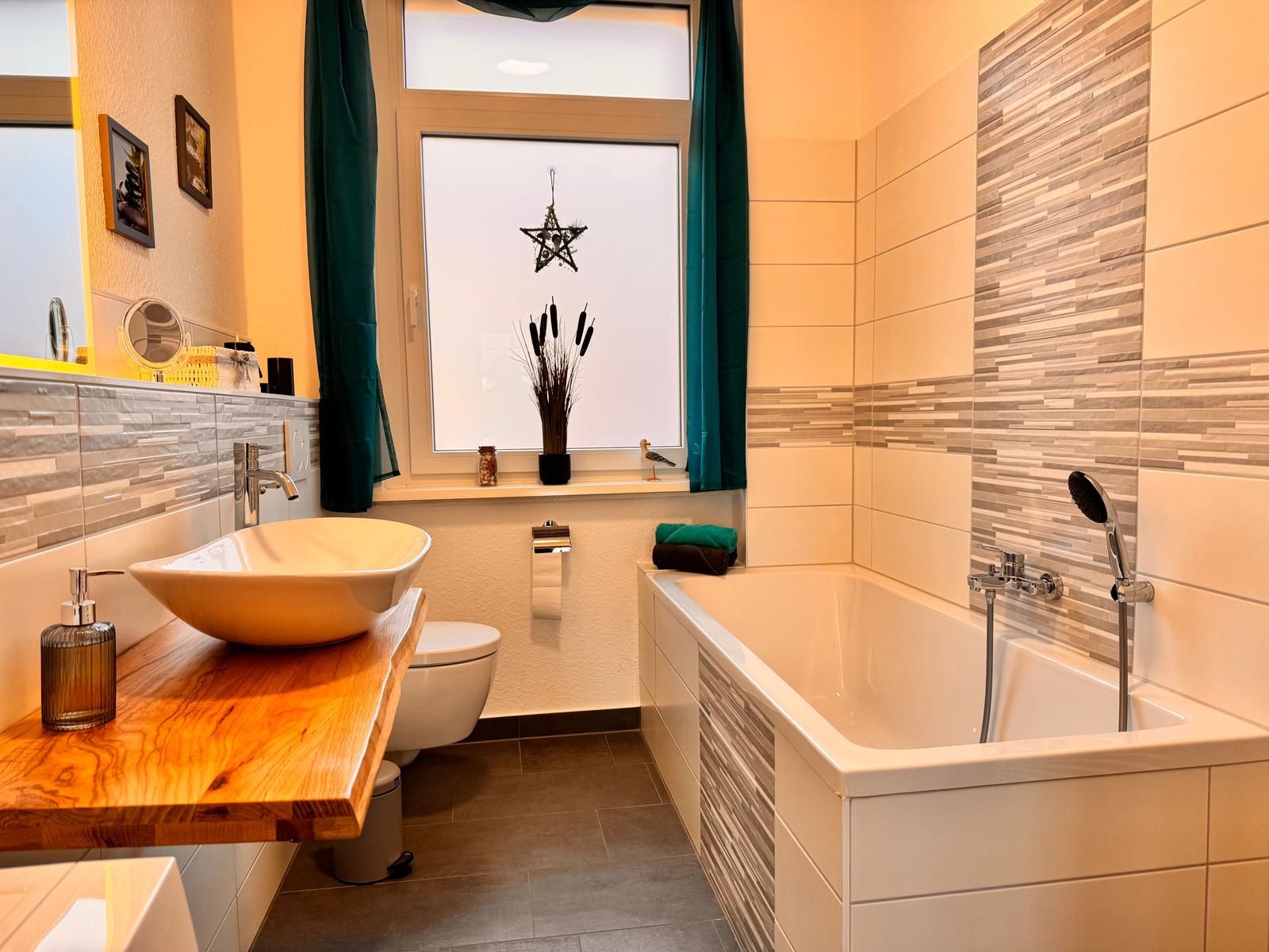 2 moderne Badezimmer eins mit WalkInDusche und eins mit Badewanne