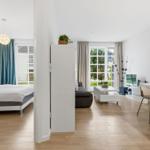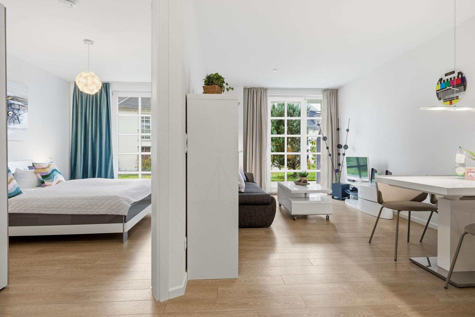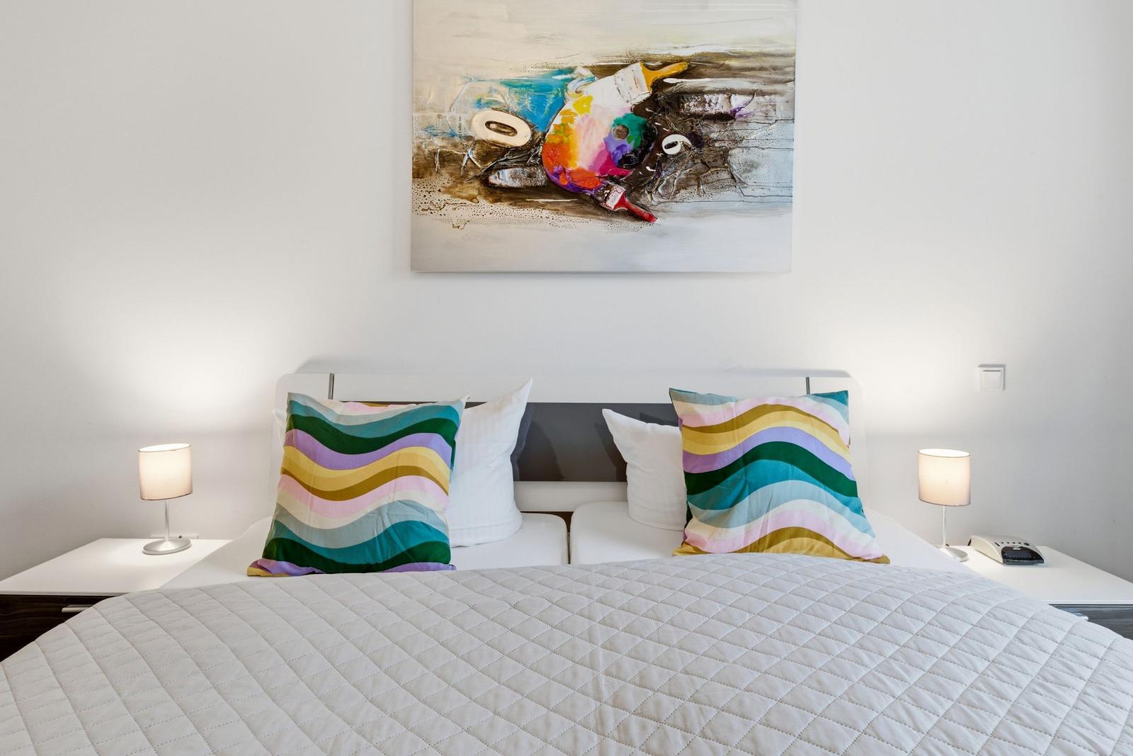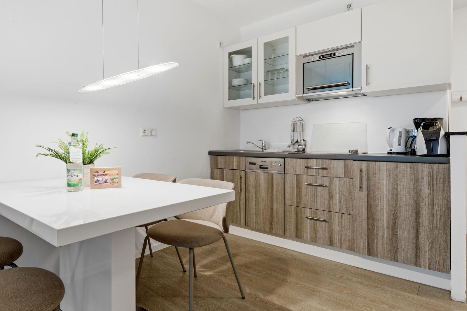 Die Ferienwohnung bietet ein einladendes Ambiente, ideal für entspannte Aufenthalte. Sie verfügt über ein Schlafzimmer mit einem komfortablen Doppelbett sowie ein Wohnschlafzimmer mit einer Schlafcouch, sodass bis zu vier Personen Platz finden. Die offene Küche ist vollständig ausgestattet mit einem Geschirrspüler, einem Elektro-/Gasherd, einer Mikrowelle, einem Kühlschrank, einer Kaffeemaschine, einem Toaster und einer Gefriermöglichkeit. Ein Duschbad mit Haartrockner sorgt für zusätzlichen Komfort.