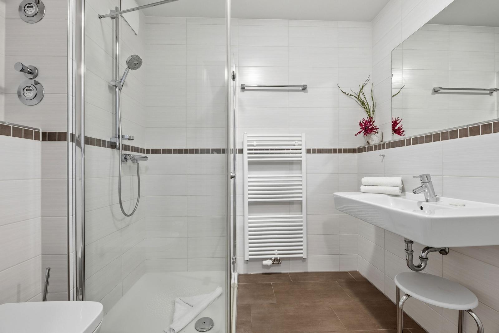 Die Wohnung ist allergikergeeignet und bietet modernen Komfort wie WLAN-Internet, einen Fernseher sowie eine Heizung. Zudem stehen ein Waschmaschine, ein Wäschetrockner und ein Staubsauger zur Verfügung. Für Gäste gibt es einen Parkplatz und einen Fahrstuhl. Besuchern steht auch ein gemeinschaftlicher Fitnessraum zur Verfügung. Geschirr, Besteck und Geschirrtücher sind ebenfalls vorhanden. Die optimale Lage und die umfassende Ausstattung machen diese Ferienwohnung zu einem perfekten Rückzugsort.