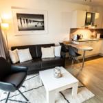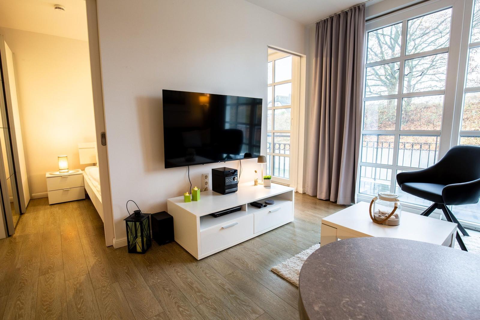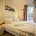 Die Ferienwohnung bietet ein komfortables und modernes Ambiente, ideal für einen entspannenden Aufenthalt. Sie umfasst ein Schlafzimmer mit einem Doppelbett und ein Badezimmer mit Duschbad, das mit einem Haartrockner ausgestattet ist. Die offene Küche ist voll möbliert und verfügt über einen Elektro-/Gasherd, Geschirrspüler, Kühlschrank, Mikrowelle sowie eine Kaffeemaschine und einen Toaster. Für zusätzlichen Komfort sorgen WLAN, eine HiFi-Anlage sowie ein TV mit DVD- und Blu-ray-Player. Allergikerfreundliche Materialien und Fliegengitter garantieren ein ungestörtes Wohngefühl. Des Weiteren stehen ein Parkplatz, ein Wäschetrockner und eine Waschmaschine zur Verfügung. Ein gemeinschaftlicher Fitnessraum rundet das Angebot ab. Der Fahrstuhl erleichtert den Zugang zur Wohnung, während Staubsauger, Geschirr und Besteck, sowie Geschirrtücher die Selbstversorgung bequem gestalten.