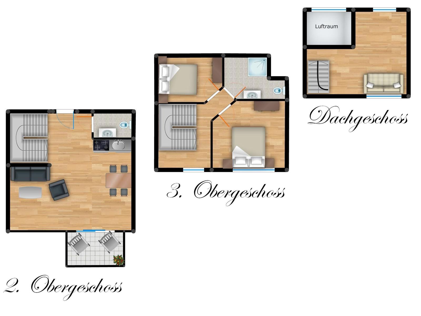 Die Ferienwohnung überzeugt durch ihre helle, offene Gestaltung und eine moderne Ausstattung. Sie verfügt über zwei Schlafzimmer, eines mit Doppelbett und das andere mit zwei Einzelbetten, ideal für Familien oder Gruppen. Die offene Küche ist mit hochwertigen Geräten ausgestattet, darunter ein Geschirrspüler, ein Elektro-/Gasherd, Backofen und Mikrowelle. Der Esstisch lädt zu gemeinsamen Mahlzeiten ein. Das Badezimmer bietet eine bodengleiche Dusche, sowie ein separates Gäste-WC.