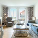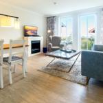 Die Ferienwohnung bietet einen komfortablen Rückzugsort für bis zu vier Personen. Sie verfügt über zwei Schlafzimmer, eines mit einem Doppelbett und das andere mit zwei Einzelbetten, die für einen erholsamen Schlaf sorgen. Die offene Küche ist modern ausgestattet und beinhaltet einen Geschirrspüler, Elektro-/Gasherd, Backofen, Mikrowelle, Kühlschrank, Kaffeemaschine, Toaster sowie eine Gefriermöglichkeit. Das Duschbad ist mit einem Haartrockner und einem Kosmetikspiegel versehen. Eine gemütliche Sitzecke mit Sofa und Sessel lädt zum Entspannen ein, während der Kamin für eine behagliche Atmosphäre sorgt. Die technische Ausstattung umfasst WLAN, eine HiFi-Anlage sowie TV. Zur weiteren Ausstattung gehören ein Esstisch, Wasserkocher und Rauchmelder. Ein Parkplatz und ein Fahrstuhl sind ebenfalls vorhanden. Die Wohnung ist allergikergeeignet und bietet alles, was für einen komfortablen Aufenthalt benötigt wird. Sonnenliegen und ein Sonnenschirm stehen bereit, um die Tage im Freien zu genießen.