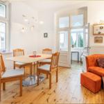 Die „Waldfriede FeWo Gelb“ in Bansin auf Usedom bietet einen entspannenden Außenbereich mit einem privaten Balkon, auf dem Gartenmöbel bereitstehen. Dieser Rückzugsort ermöglicht es, die ruhige Umgebung zwischen Wald und Ostsee zu genießen. Der Balkon lädt dazu ein, bei schönem Wetter eine Tasse Kaffee oder ein Buch in der Natur zu genießen. Die gemeinschaftlichen Bereiche des Grundstücks sind zudem ideal für gesellige Stunden. Gäste profitieren von der nähe zum etwa 300 m entfernten feinen Sandstrand, der zu ausgedehnten Spaziergängen und Badeausflügen einlädt. Einkaufen und Restaurants sind fußläufig erreichbar, während der nahegelegene Wald zu individuellen Outdoor-Aktivitäten wie Wandern und Radfahren einlädt. Die Wohnung ist ein perfekter Platz, um sowohl die Natur zu erkunden als auch entspannte Tage zu verbringen.