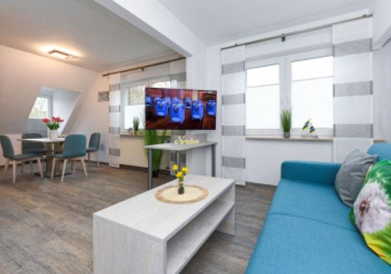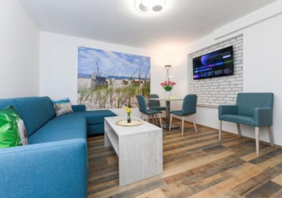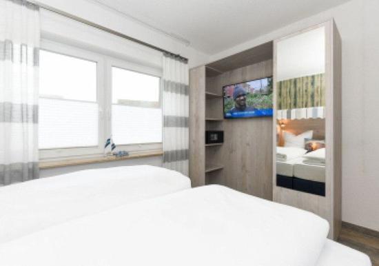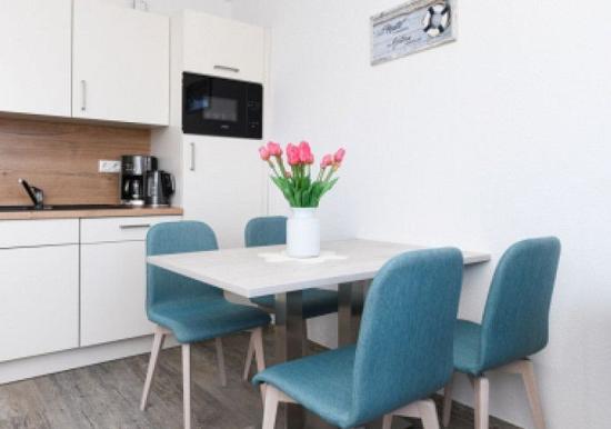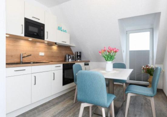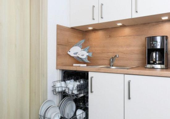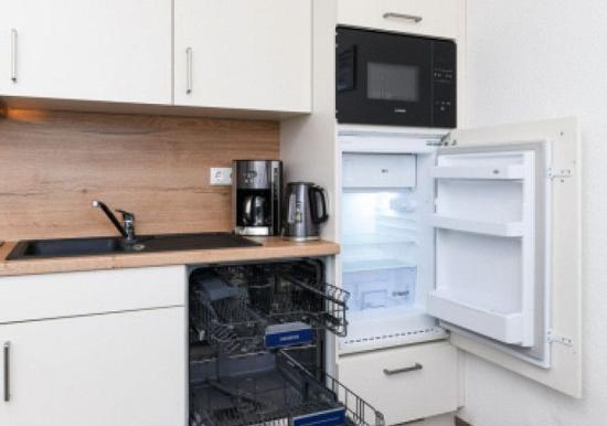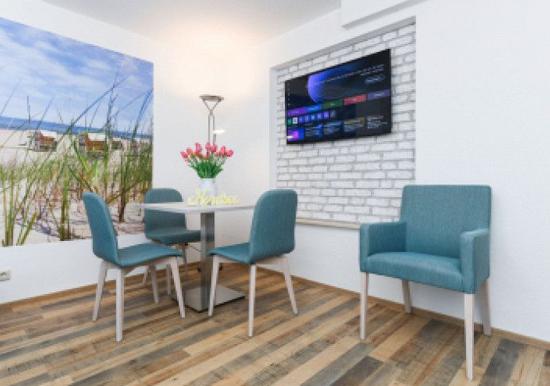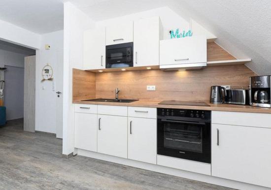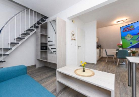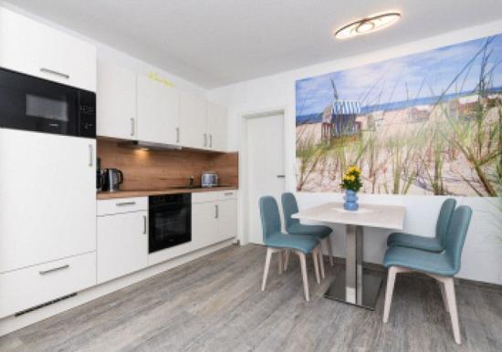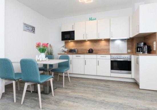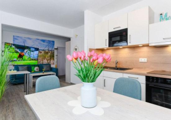 Die Ferienwohnung bietet eine großzügige und komfortable Ausstattung für einen entspannenden Aufenthalt. Sie verfügt über zwei Schlafzimmer, die mit vier Doppelbetten ausgestattet sind, ideal für Familien oder Gruppen. Die separate Küche ist voll ausgestattet mit modernen Annehmlichkeiten wie Geschirrspüler, Backofen, Mikrowelle, Kühlschrank, Gefriermöglichkeit, Toaster und einer Kaffeemaschine. Ein Kinderhochstuhl steht ebenfalls zur Verfügung, um den Aufenthalt für Familien zu erleichtern. Das Badezimmer ist mit einer Duschbadewanne ausgestattet. Für Unterhaltung sorgen ein TV sowie schnelles Internet mit WLAN. Die Wohnung bietet auch praktische Extras wie einen Wäschetrockner, eine Waschmaschine und einen Staubsauger. In den kalten Monaten sorgt die Heizung für eine angenehme Atmosphäre. Ein Parkplatz ist ebenfalls vorhanden, was den Zugang zur Ferienwohnung erleichtert. Ideal für einen erholsamen Urlaub.