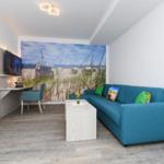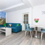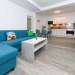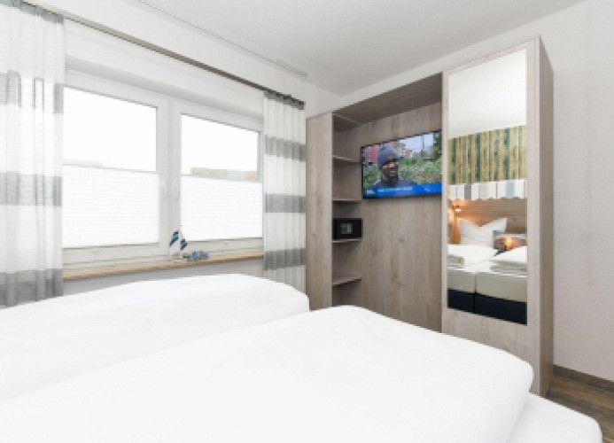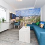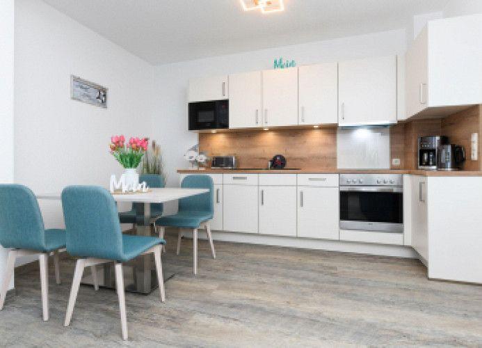 Die Ferienwohnung bietet eine komfortable und moderne Ausstattung für einen angenehmen Aufenthalt. Sie verfügt über zwei einladende Schlafzimmer mit insgesamt vier Doppelbetten, ideal für Familien oder Gruppen. Die separate, voll ausgestattete Küche ist mit Geschirrspüler, Backofen, Mikrowelle, Kühlschrank, Gefriermöglichkeit, Kaffeemaschine, Toaster und Wasserkocher ausgestattet, sodass Kochbegeisterte auf ihre Kosten kommen. Ein Kinderhochstuhl steht für die kleinen Gäste bereit.