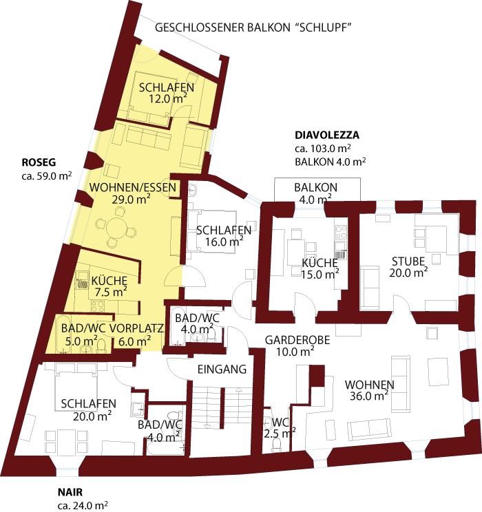 Die Wohnung Roseg vereint auf 59 m² alles, was man für einen erholsamen Aufenthalt im Engadin braucht. Der helle Wohn- und Essbereich ist mit einem Schwedenofen, einem Esstisch und liebevoll ausgewählten Arvenmöbeln eingerichtet, die dem Raum eine warme, gemütliche Atmosphäre verleihen. Die offene Küche bietet alles Nötige zur Zubereitung feiner Mahlzeiten – mit Kochherd, Backofen, Geschirrspüler, Kühlschrank, Nespresso-Maschine und Geschirr. Das Badezimmer verfügt über eine Badewanne mit Duschvorrichtung, WC, Waschbecken und Haartrockner. WLAN, ein Flachbild-TV mit Netflix und Bodenheizung sorgen für modernen Komfort. Die Wohnung eignet sich ideal für zwei bis vier Personen, die Ruhe, Charme und Authentizität suchen – perfekt für erholsame Tage im Herzen des Engadins.
