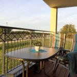 Die Suite liegt im Erdgeschoss am Ende des östlichen Flügels des Aparthotels. Durch die Ecklage ist sie sehr ruhig, durch die großen Fenster nach Osten und Süden ist das Apartment hell und sonnig. Auf dem großzügigen zur Meerseite gelegenen Balkon können Sie die wunderschöne Morgen- und Abendsonne genießen.
