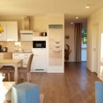 Die offene Küche mit integriertem Essbereich besitzt einen Geschirrspüler, Gefrierfach, Toaster, Kaffeemaschine, Mikrowelle, 2-Platten-Ceranfeld und Wasserkocher. Für Ihren besonderen Komfort steht Ihnen eine Tchibo Kapselmaschine (Kapseln finden Sie bei Nahversorgern mit Tchibo Store) zur Verfügung. Am großzügigen Esstisch können Sie gemütlich sitzen, um in den eigenen vier "Urlaubswänden" ihr individuelles Dinner zu genießen oder einfach um ganz in Familie lustige Gesellschaftsspiele zu spielen.