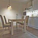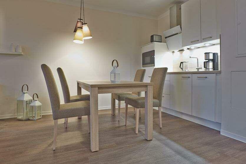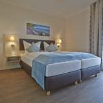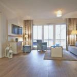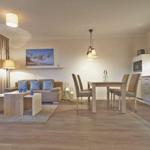 Die exklusive Ferienwohnung befindet sich im Erdgeschoss des Aparthotels und bietet auf 49 m² viel Platz für bis zu 4 Personen. Der gemütliche Wohnbereich besitzt ein bequemes Sofa, welches sich mit wenigen Handgriffen zu einer Doppelschlafcouch (1,40m x 2,00m) umfunktionieren lässt, und sorgt mit einem Flatscreen-TV für reichlich Entertainment.