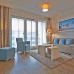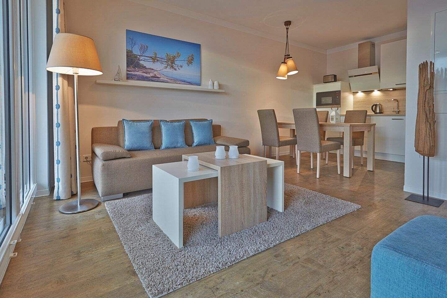 Die exklusive lichtdurchflutete Nichtraucher-Ferienwohnung bietet auf 49 m² viel Platz für bis zu 4 Personen. Der gemütliche Wohnbereich besitzt ein bequemes Sofa, welches sich mit wenigen Handgriffen zu einer Doppelschlafcouch (1,40m x 2,00m) umfunktionieren lässt, und sorgt mit einem Flatscreen-TV für reichlich Entertainment.