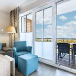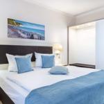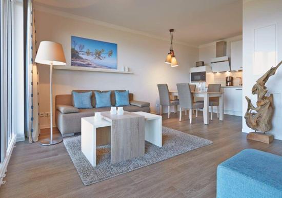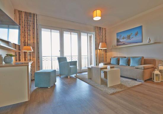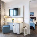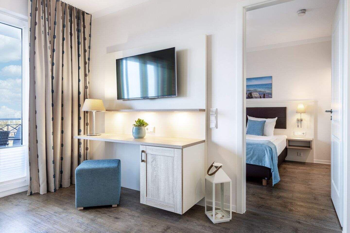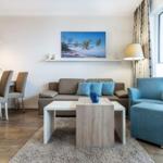 Die exklusive Suite bietet auf 49 m² viel Platz für bis zu 4 Personen. Der gemütliche Wohnbereich besitzt ein bequemes Sofa, welches sich mit wenigen Handgriffen zu einer Doppelschlafcouch (1,40m x 2,00m) umfunktionieren lässt, und sorgt mit einem Flatscreen-TV für reichlich Entertainment.