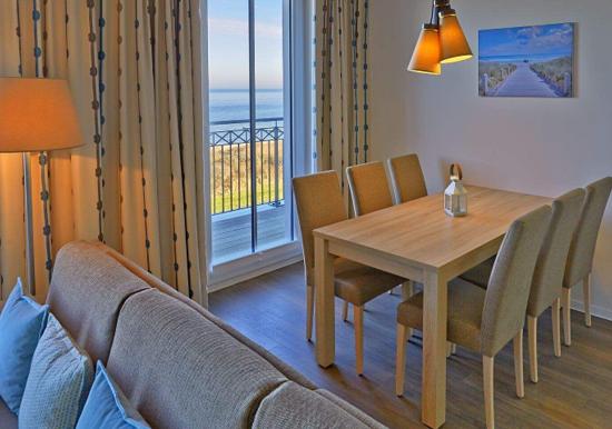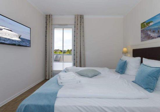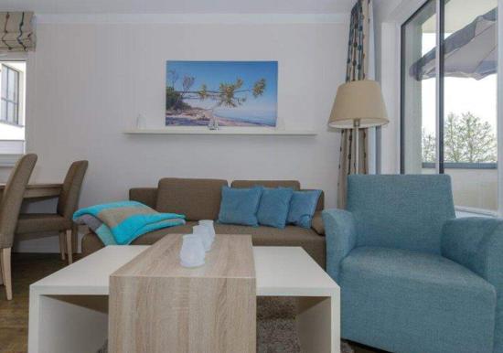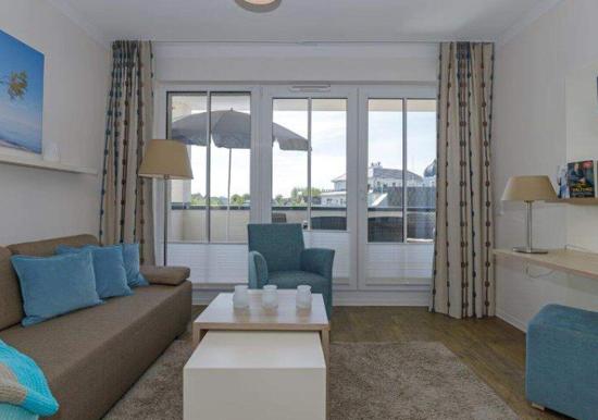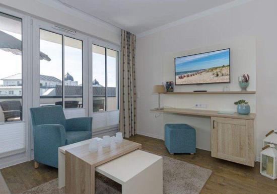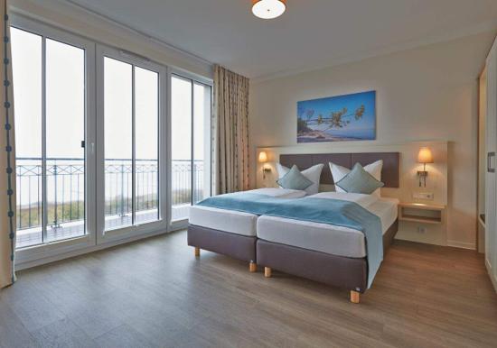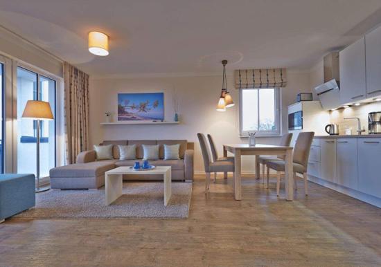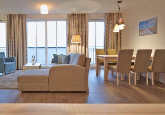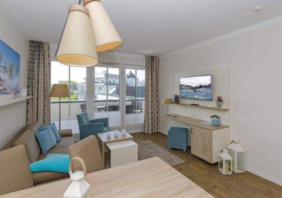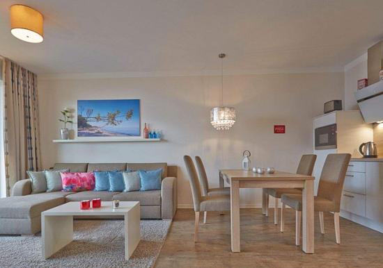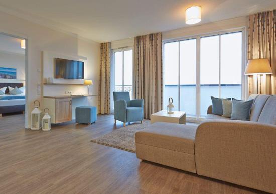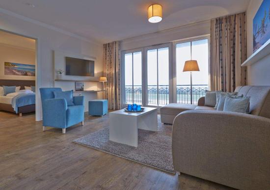 Die exklusive Suite bietet auf 49 m² viel Platz für bis zu 4 Personen. Der gemütliche Wohnbereich besitzt ein bequemes Sofa, welches sich mit wenigen Handgriffen zu einer Doppelschlafcouch (1,40m x 2,00m) umfunktionieren lässt, und sorgt mit einem Flatscreen-TV für reichlich Entertainment.