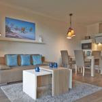 Die exklusive Suite bietet auf 49 m² viel Platz für bis zu 4 Personen. Der gemütliche Wohnbereich besitzt ein bequemes Sofa, welches sich mit wenigen Handgriffen zu einer Doppelschlafcouch (1,40m x 2,00m) umfunktionieren lässt, und sorgt mit einem Flatscreen-TV für reichlich Entertainment.