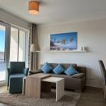 Die 49 m² große 2-Zimmer Suite ist für max. 4 Personen geeignet und befindet sich insüdwestlicher Lage mit seitlichem Blick auf die Ostsee.