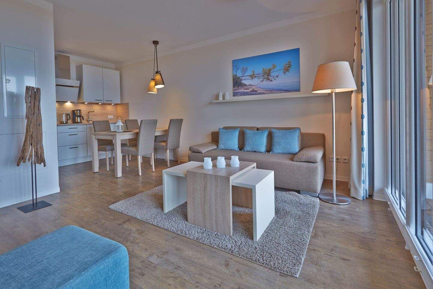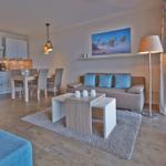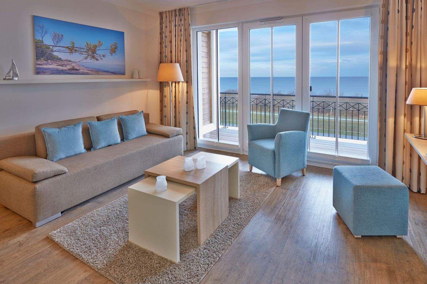 Die exklusive Suite bietet auf 49 m² viel Platz für bis zu 4 Personen. Der gemütliche Wohnbereich besitzt ein bequemes Sofa, welches sich mit wenigen Handgriffen zu einer Doppelschlafcouch (1,40m x 2,00m) umfunktionieren lässt, und sorgt mit einem Flatscreen-TV für reichlich Entertainment.