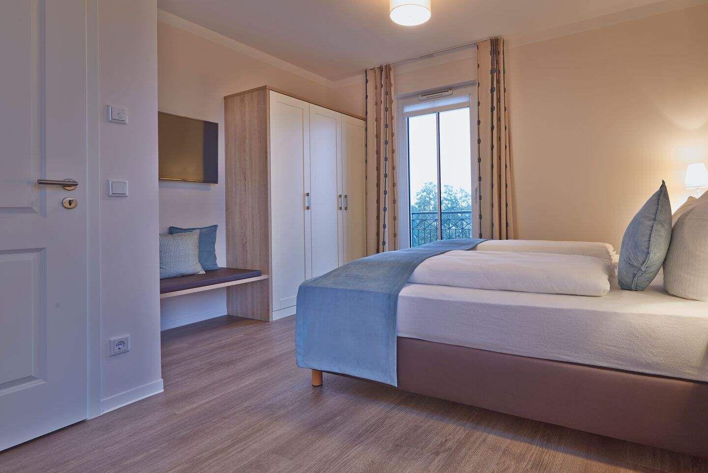 Die exklusive Suite bietet auf 57 m² viel Platz für bis zu 4 Personen. Der gemütliche Wohnbereich besitzt ein bequemes Sofa, welches sich mit wenigen Handgriffen zu einer Doppelschlafcouch (1,40m x 2,00m) umfunktionieren lässt, und sorgt mit einem Flatscreen-TV für reichlich Entertainment.