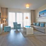 Die 68 m² große lichtdurchflutete 2 1/2 -Zimmer Suite ist für bis zu 5 Personen geeignet. Besonders hervorzuheben sind der großzügige Balkon und die Ecklage mit Aussicht bis auf die weite Ostsee und das gesamte Umland.