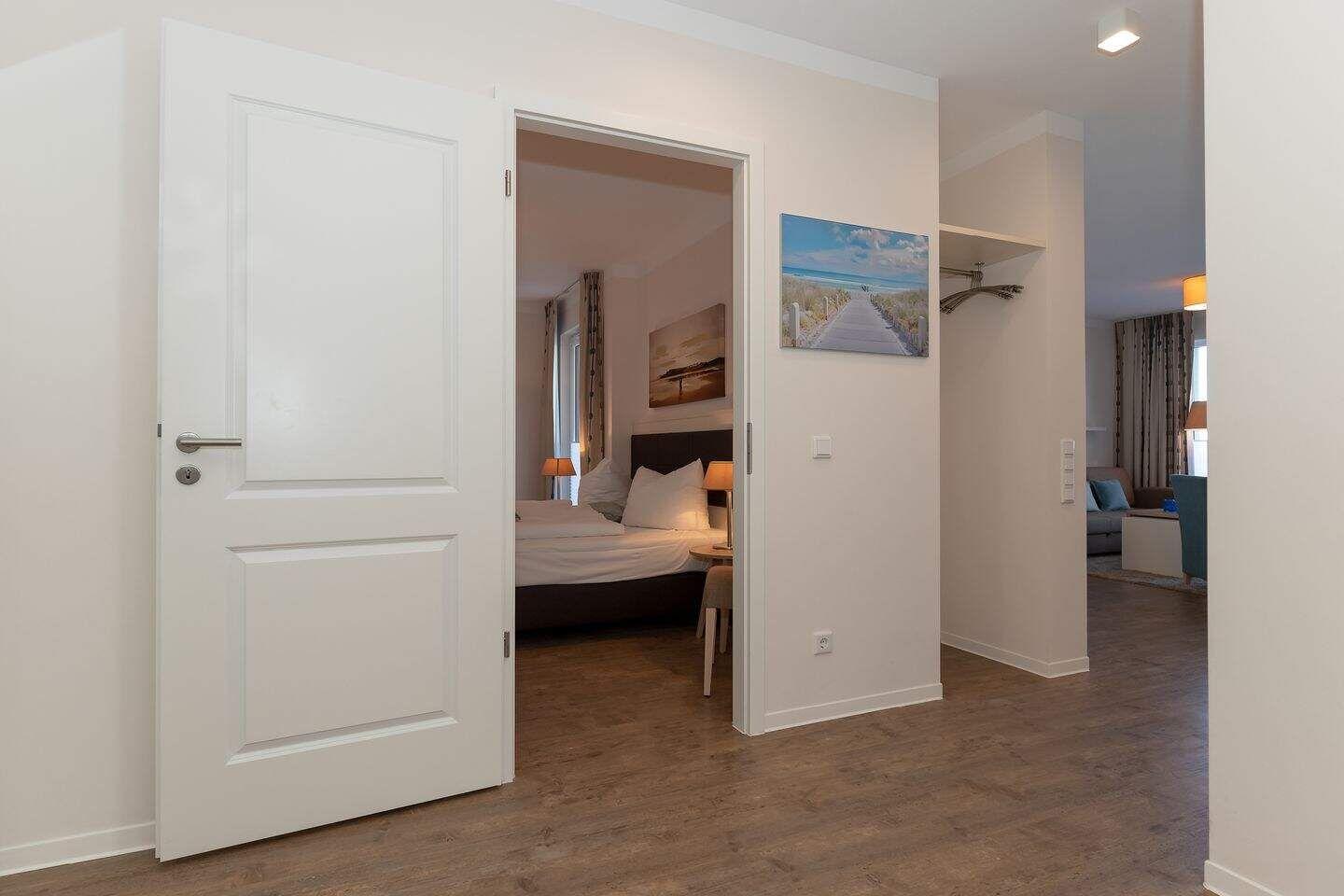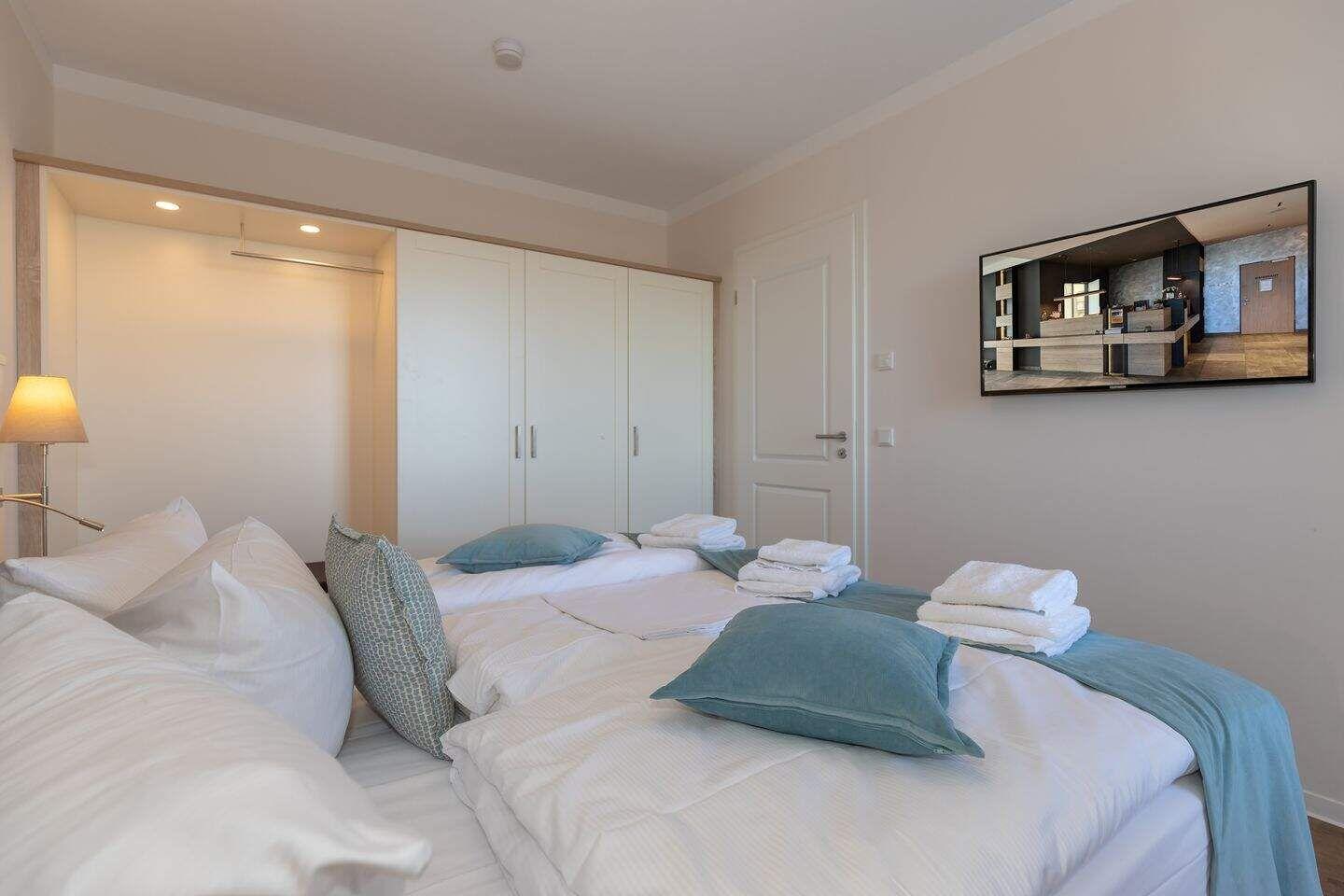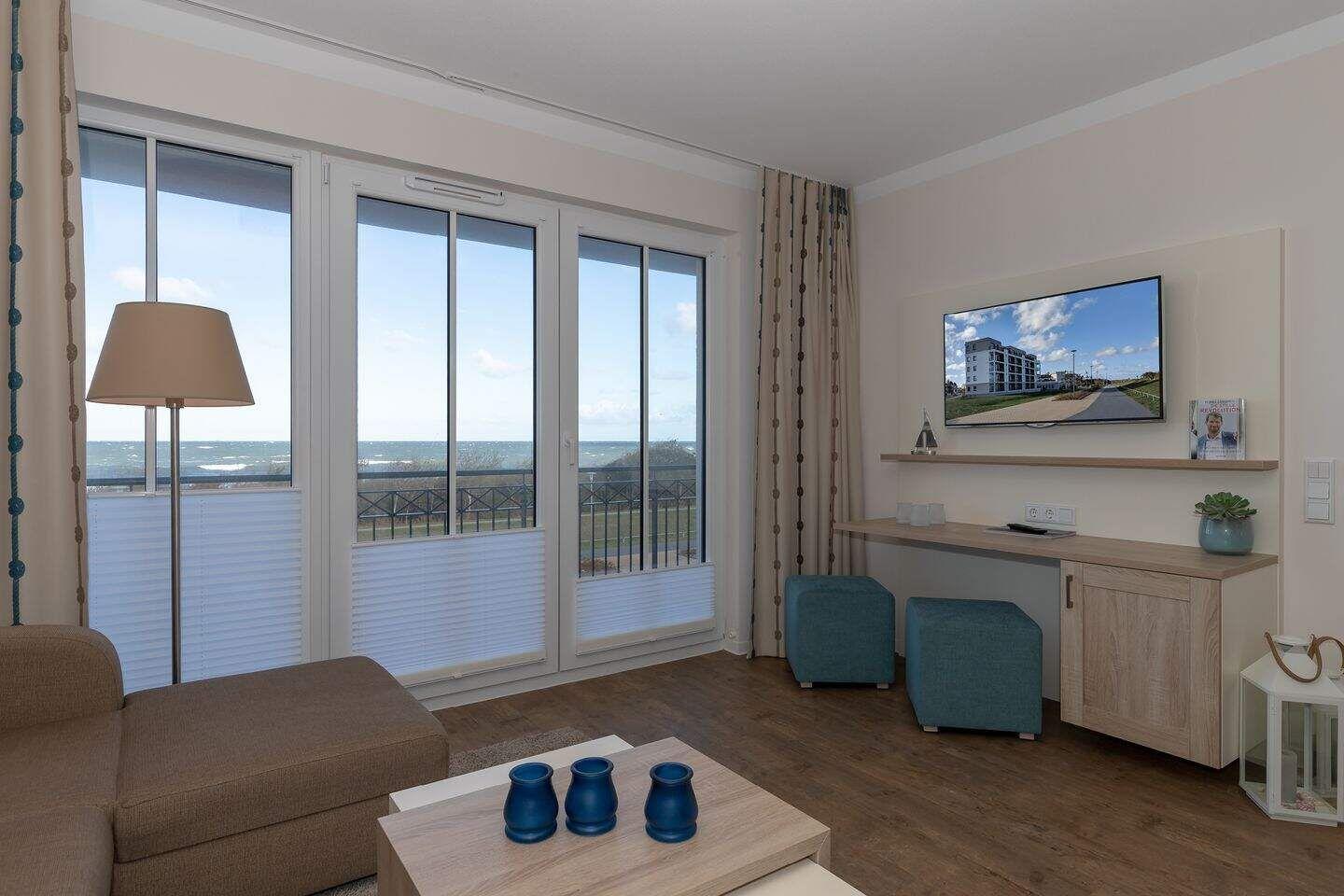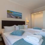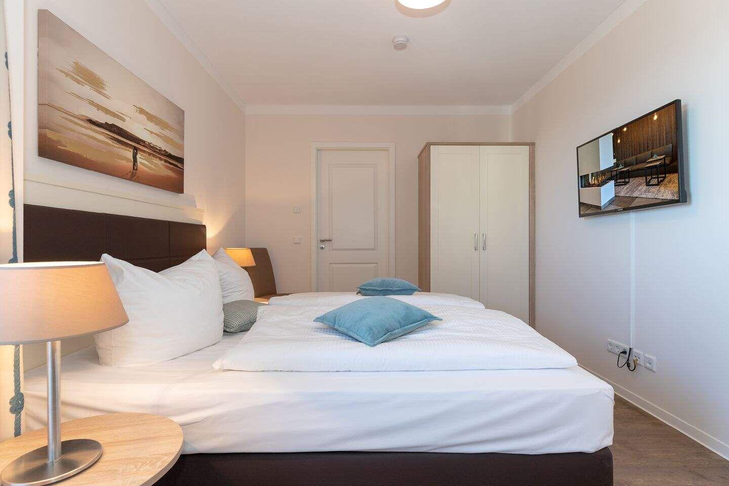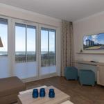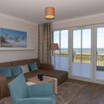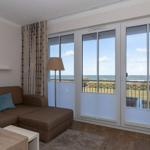 Diese exklusive Ferienwohnung befindet sich in der zweiten Etage des Aparthotels und bietet auf 77 m² viel Platz für bis zu 5 Personen. Der gemütliche Wohnbereich besitzt ein bequemes Sofa, welches sich mit wenigen Handgriffen zu einer Schlafcouch (1,40m/x 2,00m) umfunktionieren lässt, und sorgt mit einem Flatscreen-TV für reichlich Entertainment.