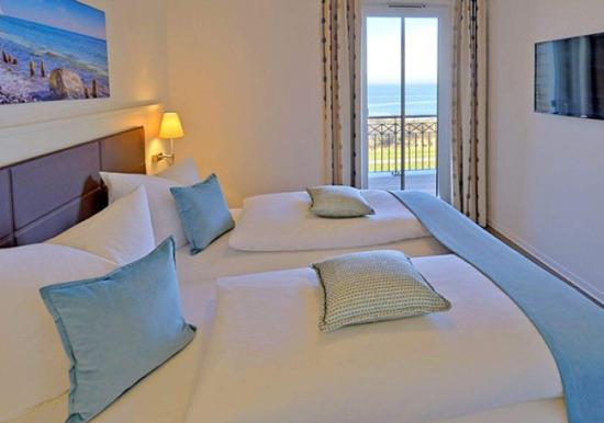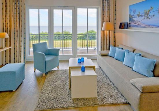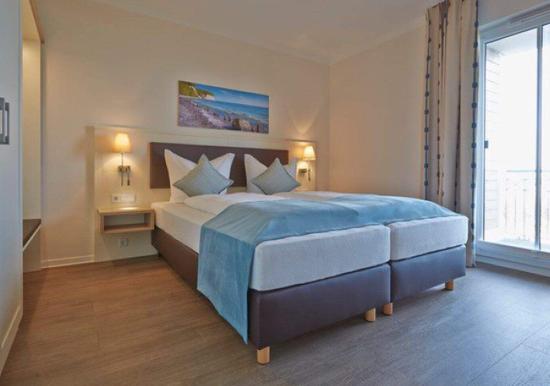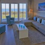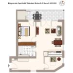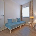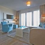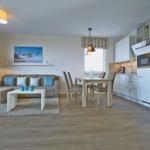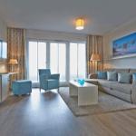 Die lichtdurchflutete Suite befindet sich im zweiten Obergeschoss des Aparthotels und bietet auf 68 m² viel Platz für bis zu 5 Personen. Der moderne Wohnbereich besitzt ein bequemes Sofa, welches sich mit wenigen Handgriffen zu einer Doppelschlafcouch (1,50m x 2,00m) umfunktionieren lässt, und sorgt mit einem Flatscreen-TV für reichlich Entertainment.