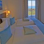 Das Schlafzimmer bietet ein modernes Boxspringbett (1,80m x 2,10m), auf welchem Sie süße Träume haben werden. Auch im Schlafzimmer gibt es einen Flatscreen-TV zu Ihrem Entertainment. Ein Kinderbett sowie ein Hochstuhl befinden sich in der Suite.