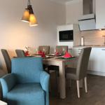 Die offene Küche mit integriertem Essbereich besitzt einen Geschirrspüler, Gefrierfach, Toaster, Kaffeemaschine, Mikrowelle, 2-Platten-Ceranfeld und Wasserkocher. Am großzügigen Esstisch können Sie gemütlich sitzen, um in den eigenen vier "Urlaubswänden" ihr individuelles Dinner zu genießen oder einfach um ganz in Familie lustige Gesellschaftsspiele zu spielen.