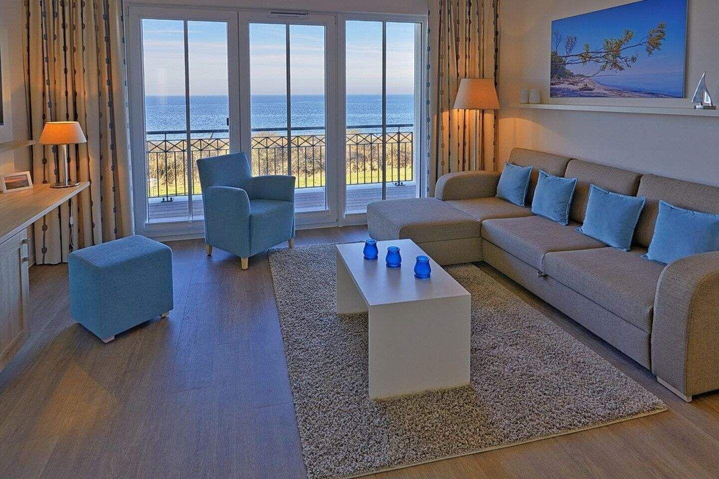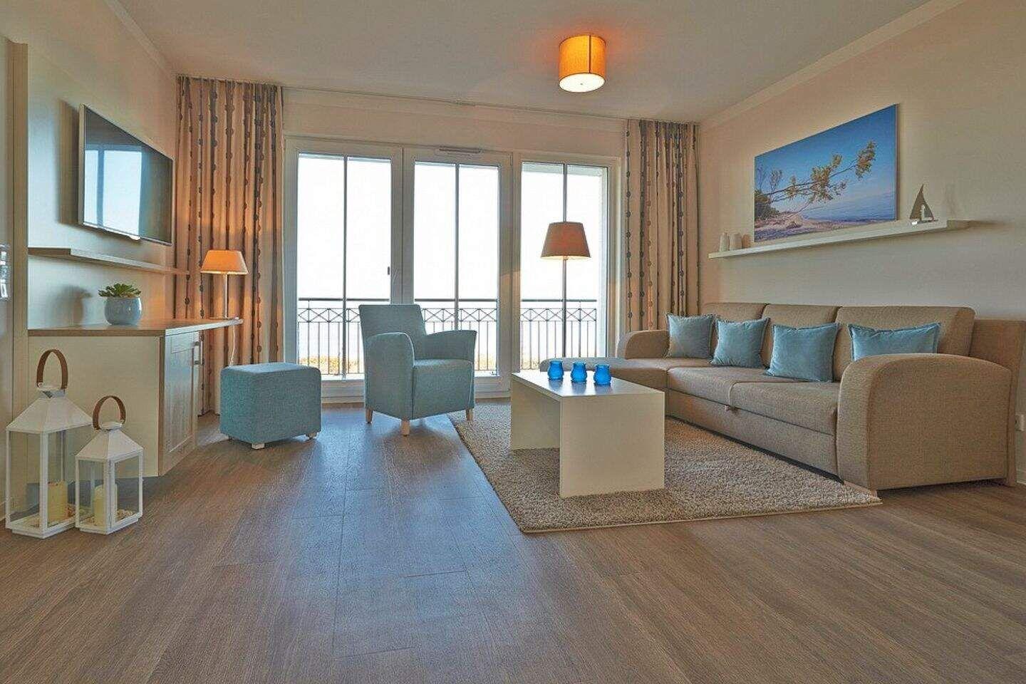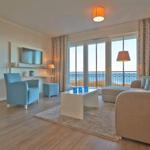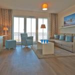 Diese exklusive Suite befindet sich in der dritten Etage und bietet auf 68 m² viel Platz für bis zu 5 Personen. Der gemütliche Wohnbereich besitzt ein bequemes Sofa, welches sich mit wenigen Handgriffen zu einer Doppelschlafcouch (1,50m x 2,00m) umfunktionieren lässt, und sorgt mit einem Flatscreen-TV für reichlich Entertainment.