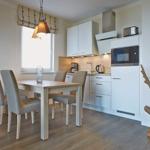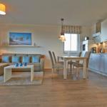 Die offene Küche mit integriertem Essbereich besitzt einen Geschirrspüler, Kühlschrank mit Gefrierfach, Toaster, Kaffeemaschine, Mikrowelle, 2-Platten-Ceranfeld und Wasserkocher. Am großzügigen Esstisch können Sie gemütlich sitzen, um in den eigenen vier "Urlaubswänden" ihr individuelles Dinner zu genießen oder einfach um ganz in Familie lustige Gesellschaftsspiele zu spielen.