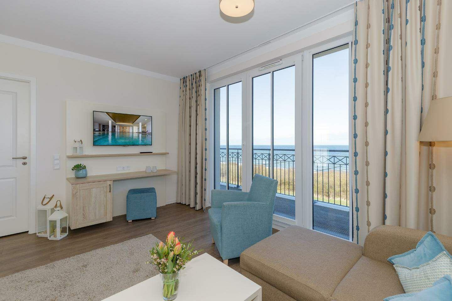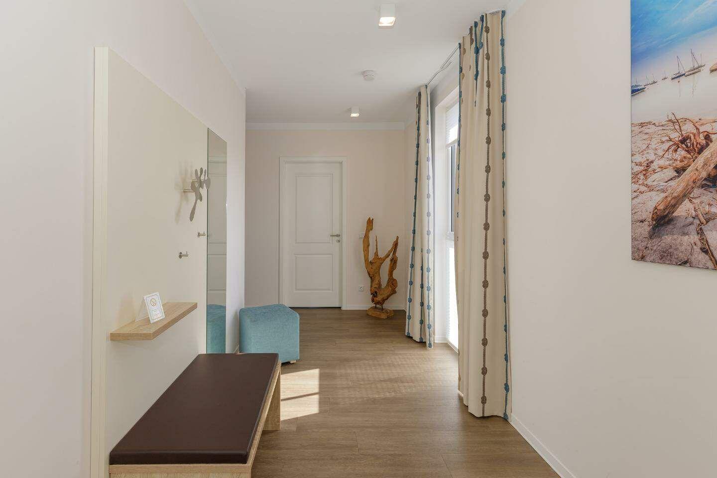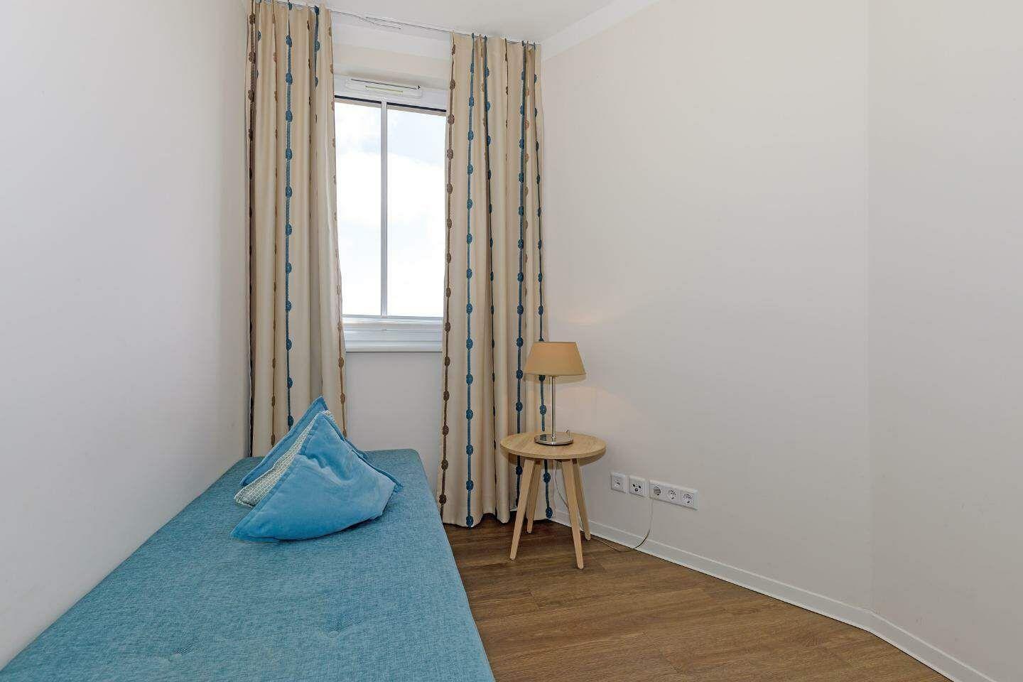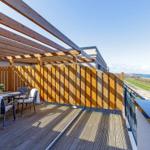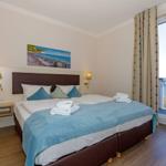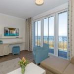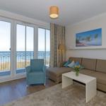 Das Penthouse befindet sich in der vierten Etage des Aparthotels und bietet auf 76 m² viel Platz für bis zu 5 Personen (3 Erwachsene und 2 Kinder). Der moderne Wohnbereich besitzt ein bequemes Sofa, welches sich mit wenigen Handgriffen zu einer Doppelschlafcouch (1,50m x 2,00m) umfunktionieren lässt, und sorgt mit einem Flatscreen-TV für reichlich Entertainment.