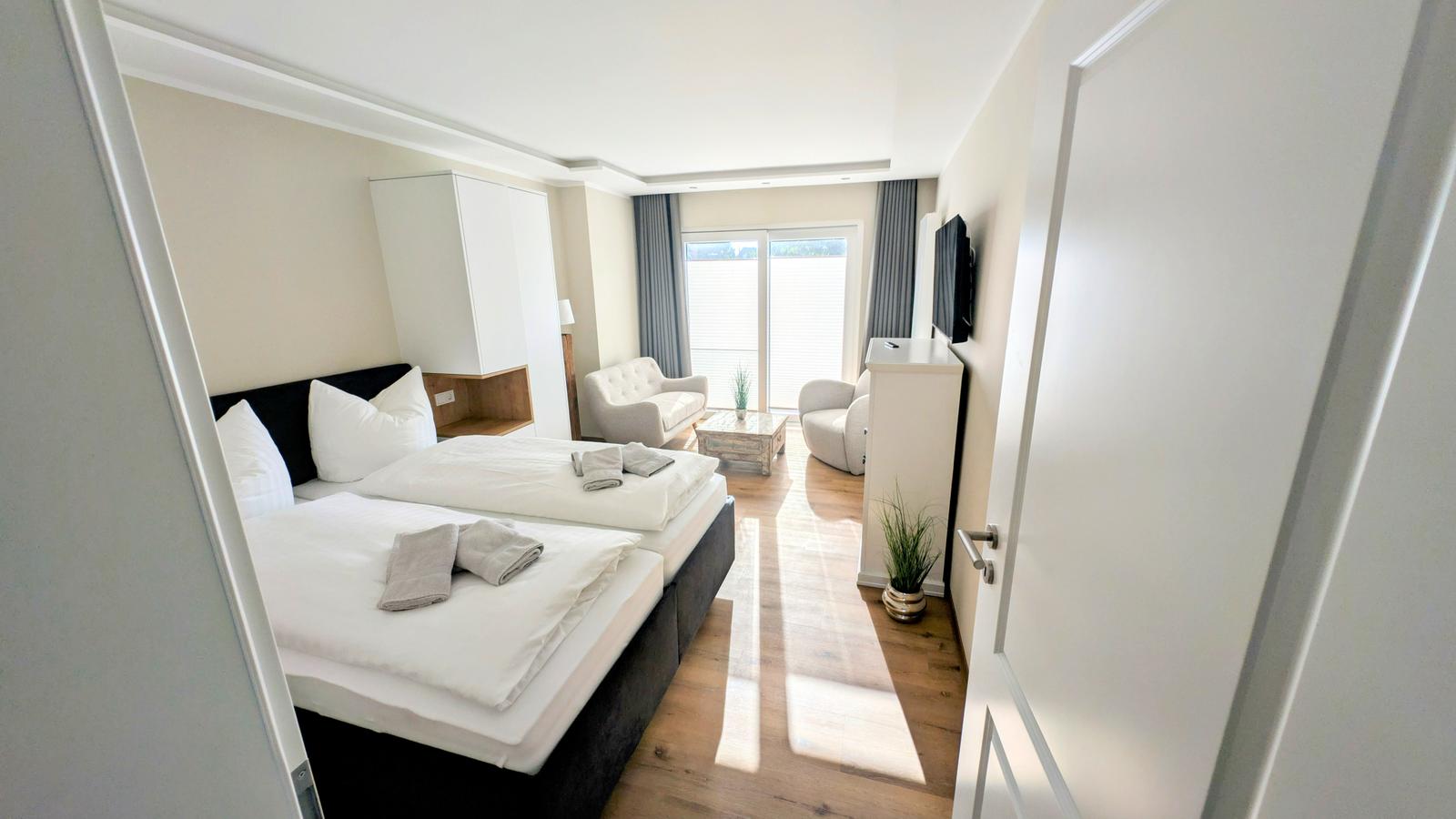 Nur 150 m sind es bis zum Hauptbadestrand und zur Kurpromenade. Die Fußgängerzone mit Cafes, Restaurants und Geschäften ist nur 50 m entfernt. Nebenan liegen die Tennisplätze und eine Tennishalle.
