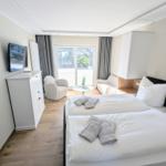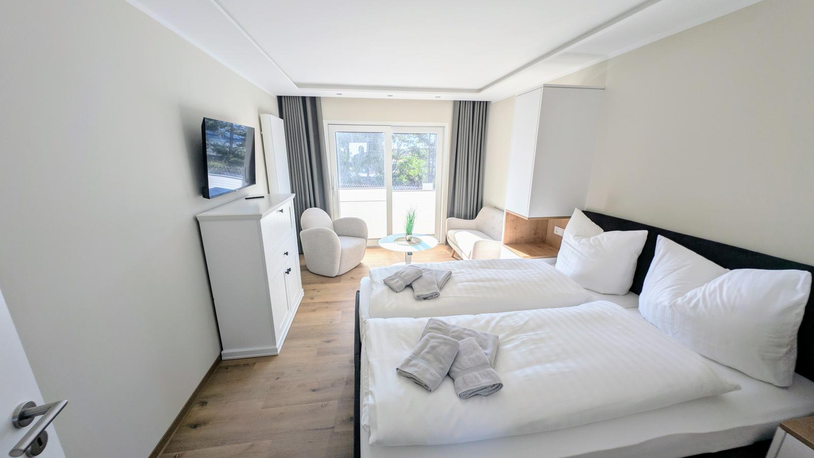 Nur 150 m sind es bis zum Hauptbadestrand und zur Kurpromenade. Die Fußgängerzone mit Cafes, Restaurants und Geschäften ist nur 50 m entfernt. Nebenan liegen die Tennisplätze und eine Tennishalle.