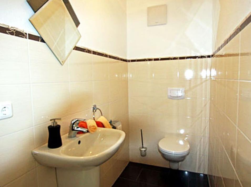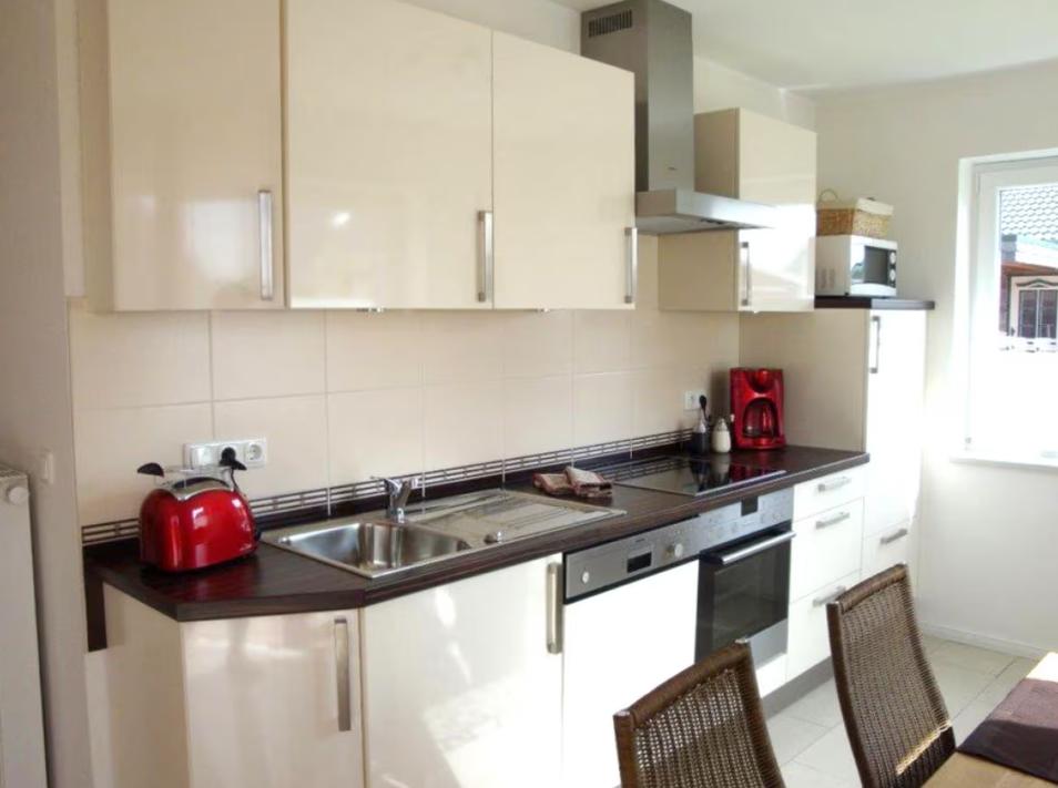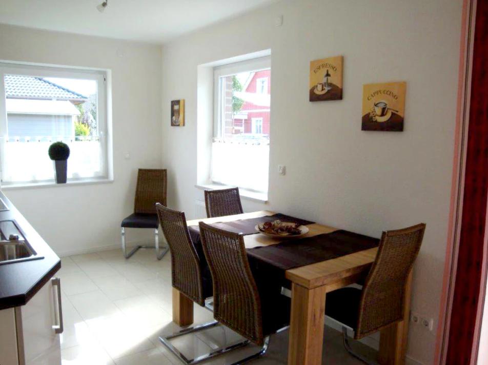 Das stilvoll eingerichtete Wohnzimmer mit TV und DVD-Player, gemütlicher Sitzecke mit Kaminofen für kältere Tage (zudem ist eine Zentralheizung vorhanden) und der offen angeschlossene Küchenbereich mit Essecke und moderner Einbauküche lassen keine Wünsche für einen angenehmen Urlaub offen. In der Küche vorhanden sind Spülmaschine, Toaster, Kaffeemaschine und alles was man sonst noch braucht. Bitte bringen Sie Bettwäsche und Handtücher von zuhause mit.