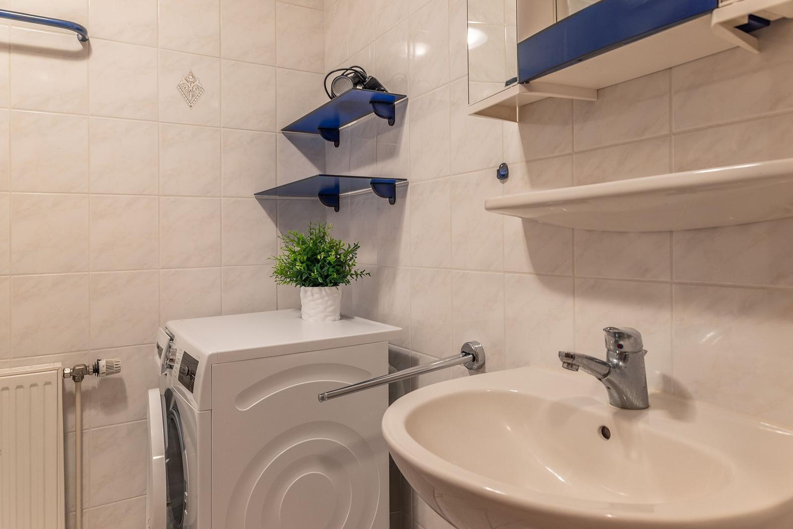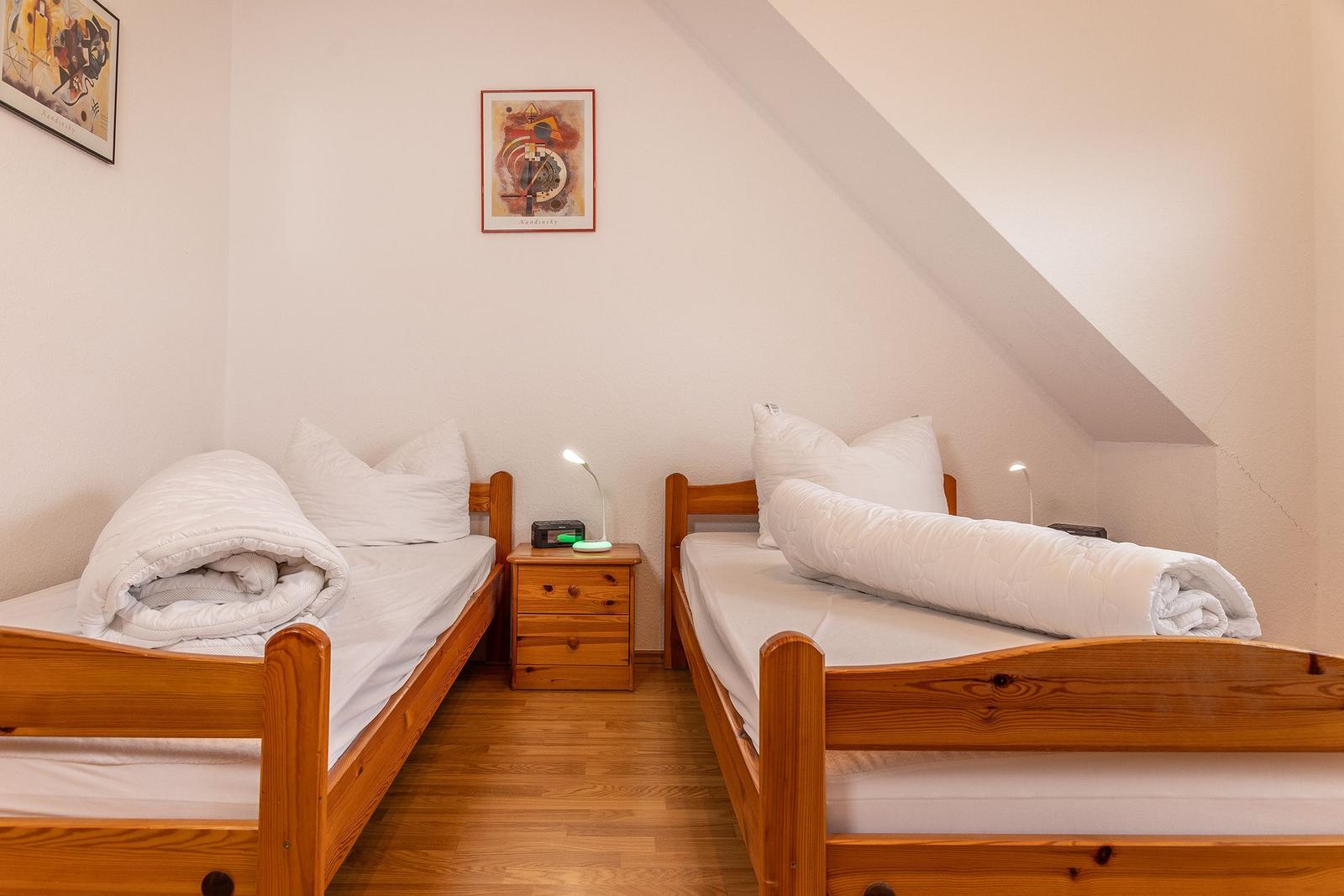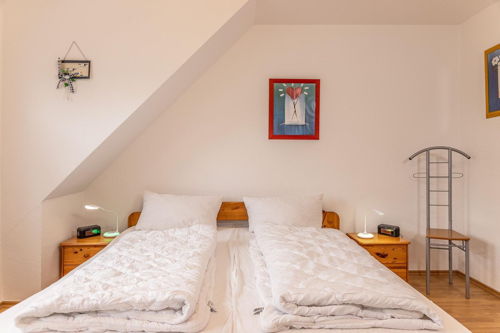 Insgesamt sind zwei Schlafzimmer vorhanden, eines mit einem Doppelbett und das andere mit zwei Einzelbetten sowie einem Kinderbett. Die zwei Badezimmer sind funktional mit Dusche und WC ausgestattet. Die Südterrasse lädt zum Entspannen ein. Zu den weiteren Annehmlichkeiten gehören WLAN mit 100 MBit/s, eine HiFi-Anlage, Parkmöglichkeiten und eine Waschmaschine. Diese allergikergeeignete Wohnung bietet Qualität und Komfort für jeden Aufenthalt.