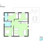Die Ferienwohnung bietet eine umfassende Ausstattung für einen komfortablen Aufenthalt. Sie verfügt über drei Schlafzimmer, darunter ein Doppelzimmer mit einem Doppelbett sowie zwei Zweibettzimmer mit je zwei Einzelbetten. Zwei Einzelbettcouchen (1,40 m) bieten zusätzliche Schlafmöglichkeiten. Die offene Küche ist vollständig ausgestattet mit einem Elektro-/Gasherd, Backofen, Kühlschrank, Geschirrspüler und Kaffeemaschine. Kinderhochstuhl und Geschirr für die Kleinen sind ebenfalls vorhanden.
