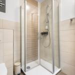 Das Badezimmer ist elegant gestaltet und verfügt über moderne Sanitäreinrichtungen, die Komfort und Funktionalität vereinen. Die gesamte Einrichtung ist durchdacht und sorgt für ein ansprechendes Wohngefühl.