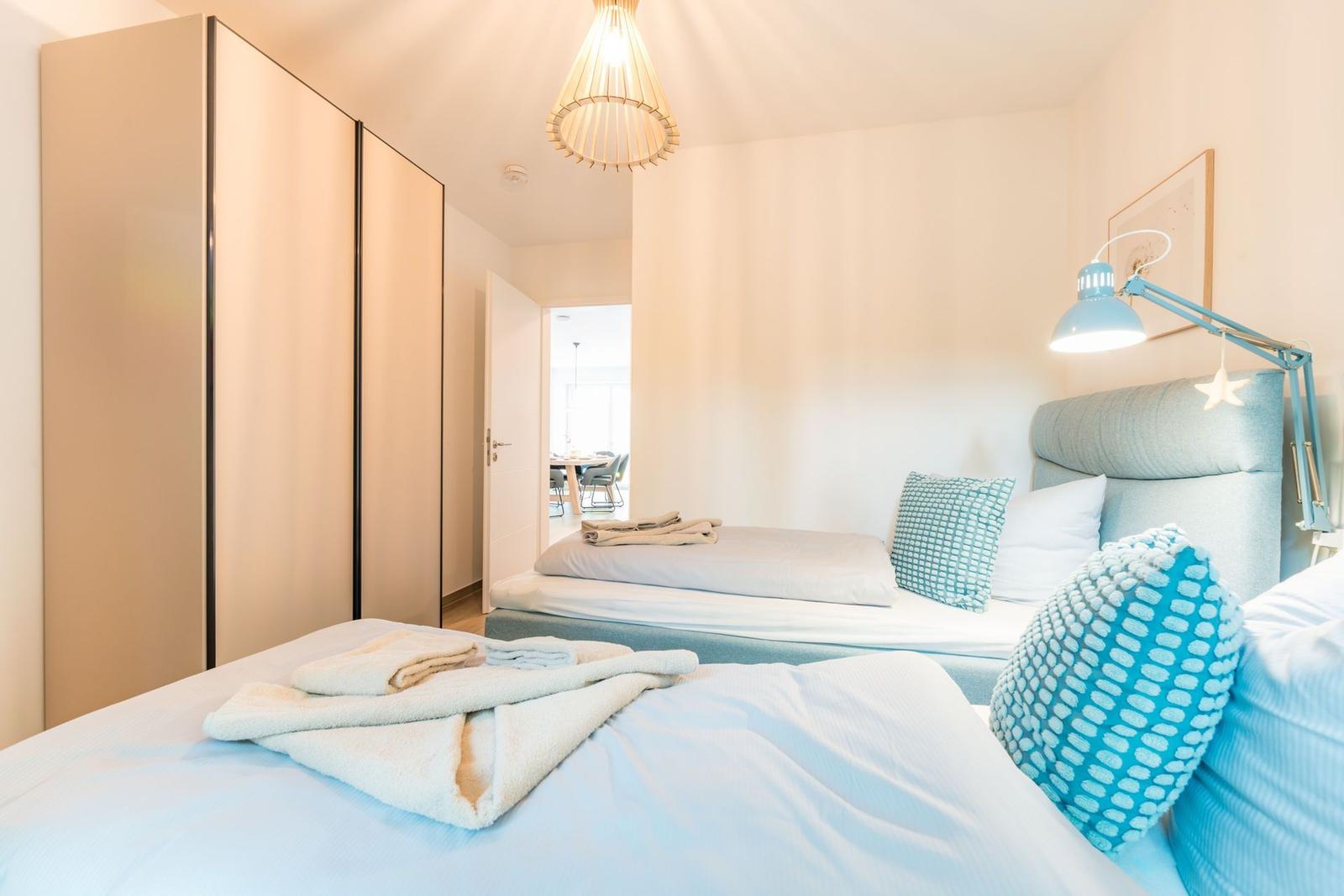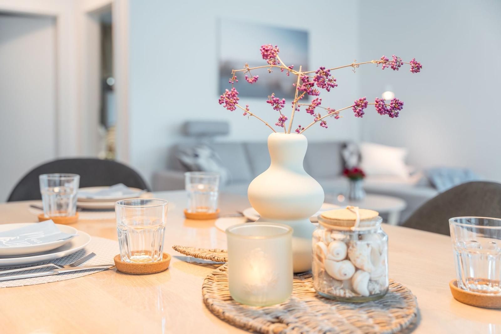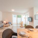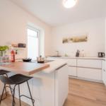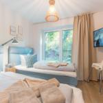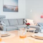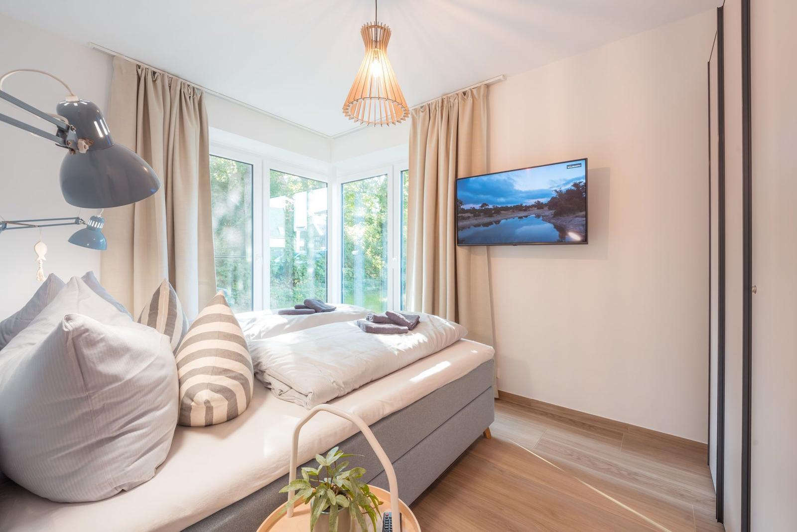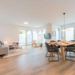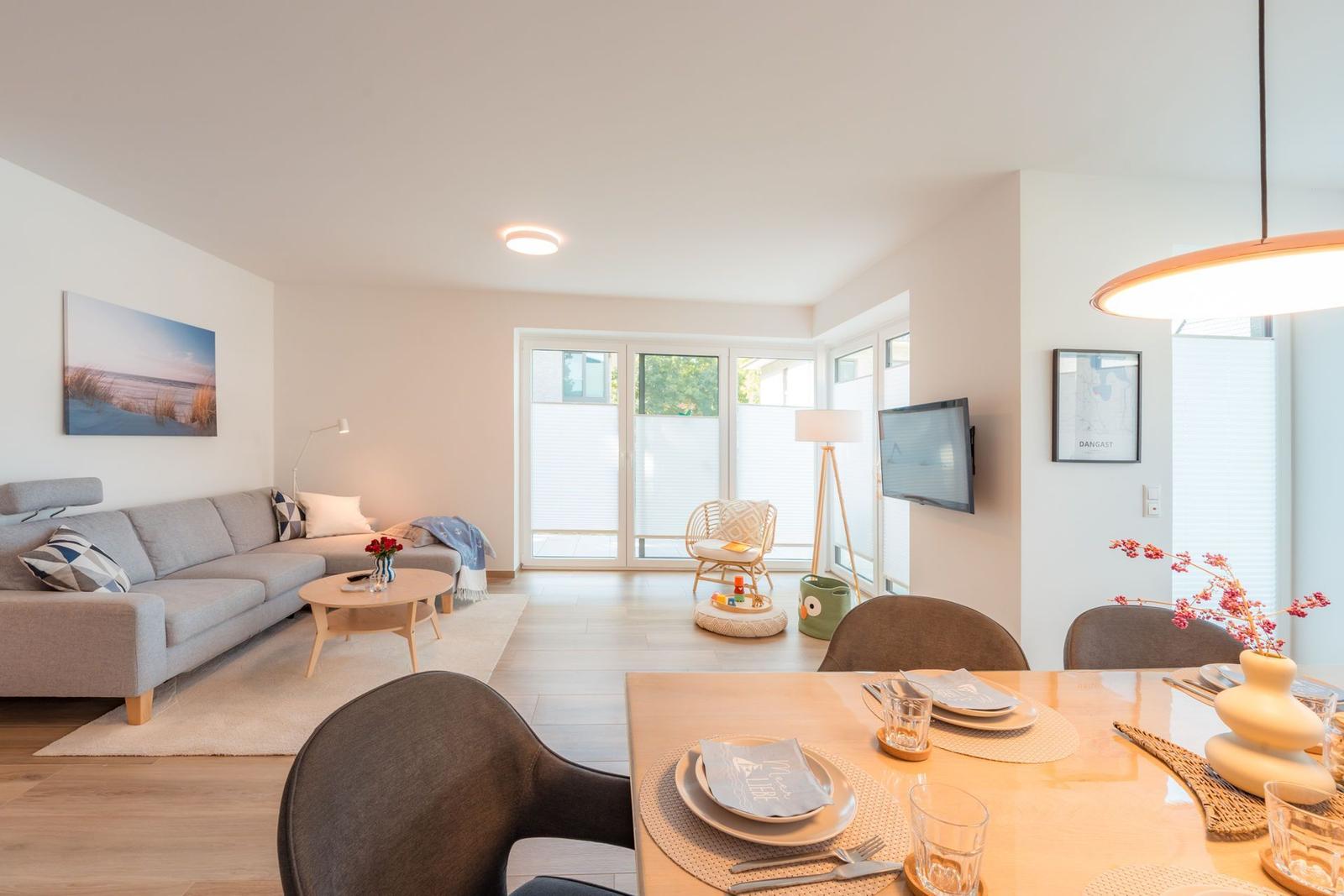 Die Ferienwohnung bietet modernen Komfort in einem barrierefreien Ambiente. Mit zwei gemütlichen Schlafzimmern, die jeweils mit einem Doppelbett ausgestattet sind, bietet sie ausreichend Platz für Familien und Gruppen. Die offene Küche ist vollständig ausgestattet mit einem Elektro-/Gasherd, Backofen, Mikrowelle und Kühlschrank, ergänzt durch eine Kaffeemaschine, Toaster und Gefriermöglichkeit. Der Esstisch lädt zu gemeinsamen Mahlzeiten ein. Das Badezimmer verfügt über eine bodengleiche Dusche und ist mit einem Fenster für optimale Belüftung ausgestattet. Zusätzliche Annehmlichkeiten wie WLAN, eine HiFi-Anlage und ein Fernseher sorgen für Unterhaltung. Für Allergiker geeignet, ist die Wohnung mit Fußbodenheizung und Fliegengittern ausgestattet. Ein Parkplatz steht zur Verfügung, und für Familien gibt es einen Kinderhochstuhl sowie Spielzeug. Waschmaschine und Bügeleisen runden das Angebot ab, um den Aufenthalt so komfortabel wie möglich zu gestalten.