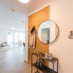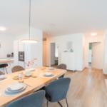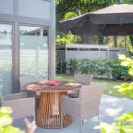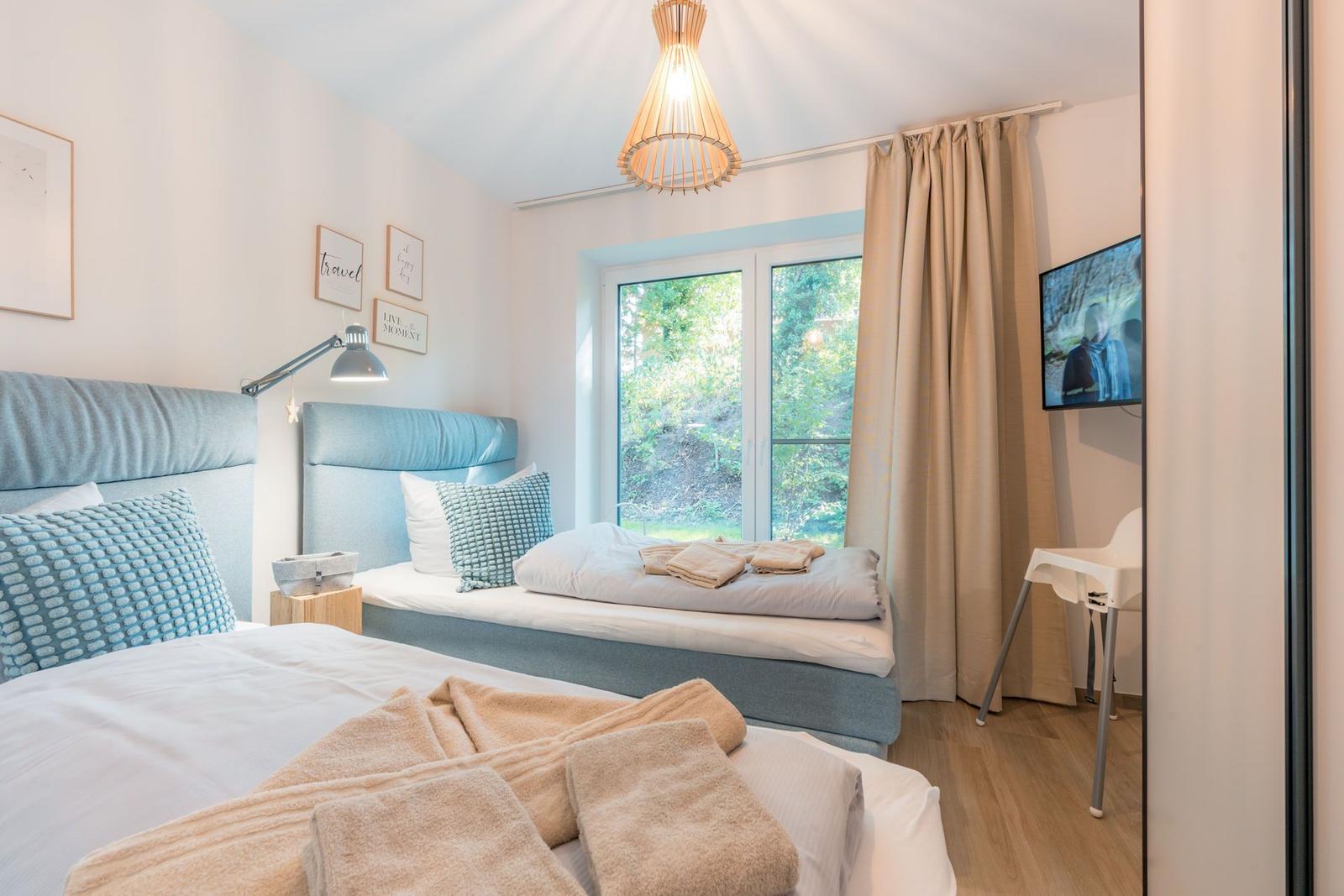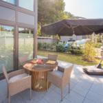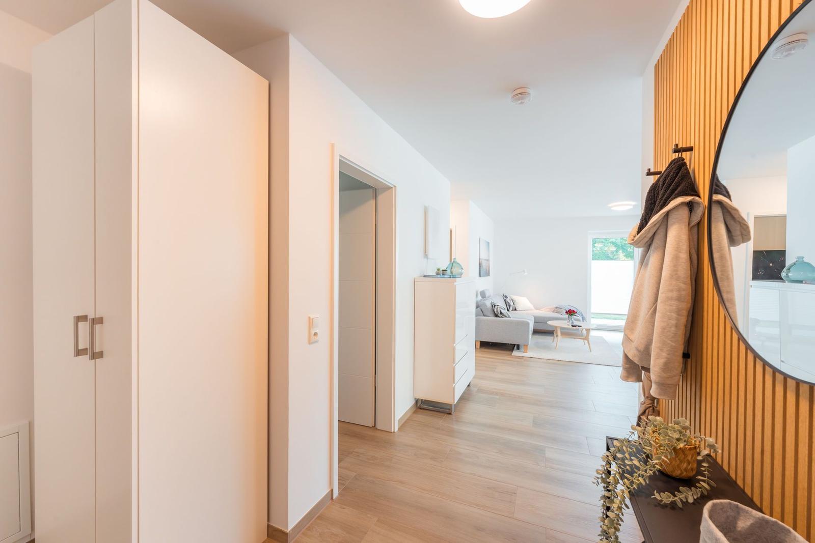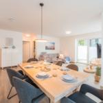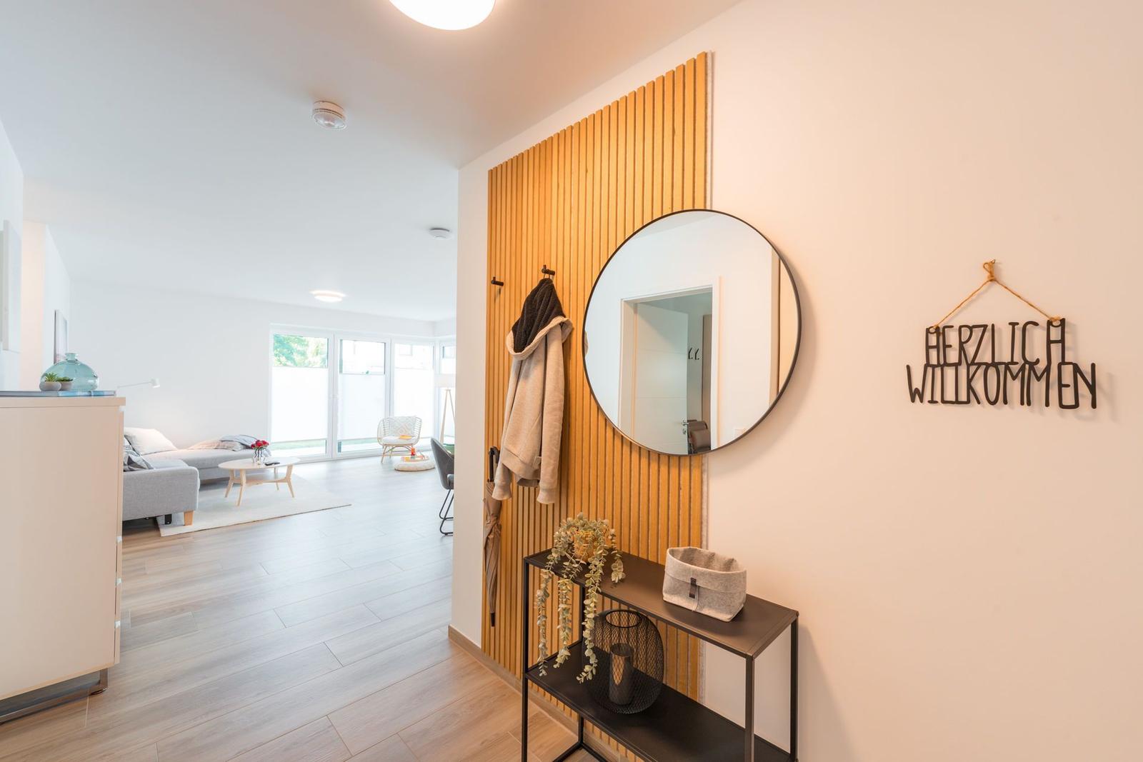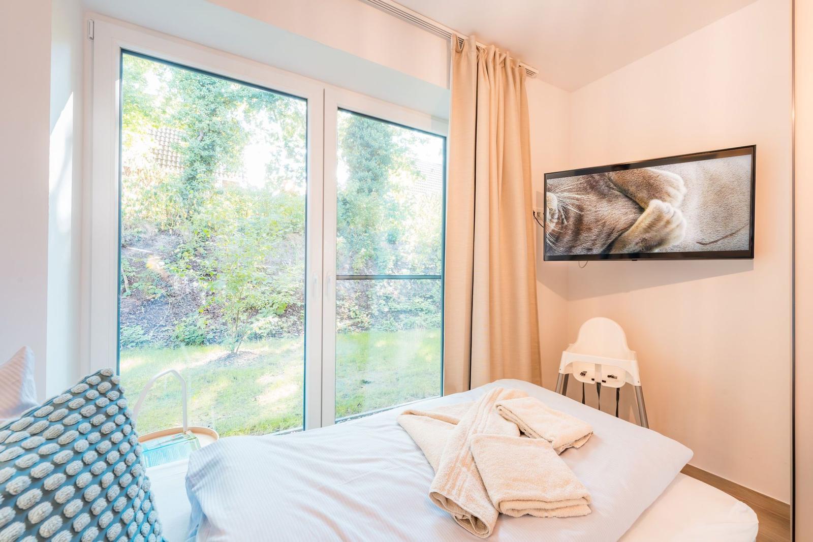 Die Ferienwohnung bietet modernen Komfort in einem barrierefreien Ambiente. Mit zwei gemütlichen Schlafzimmern, die jeweils mit einem Doppelbett ausgestattet sind, bietet sie ausreichend Platz für Familien und Gruppen. Die offene Küche ist vollständig ausgestattet mit einem Elektro-/Gasherd, Backofen, Mikrowelle und Kühlschrank, ergänzt durch eine Kaffeemaschine, Toaster und Gefriermöglichkeit. Der Esstisch lädt zu gemeinsamen Mahlzeiten ein. Das Badezimmer verfügt über eine bodengleiche Dusche und ist mit einem Fenster für optimale Belüftung ausgestattet. Zusätzliche Annehmlichkeiten wie WLAN, eine HiFi-Anlage und ein Fernseher sorgen für Unterhaltung. Für Allergiker geeignet, ist die Wohnung mit Fußbodenheizung und Fliegengittern ausgestattet. Ein Parkplatz steht zur Verfügung, und für Familien gibt es einen Kinderhochstuhl sowie Spielzeug. Waschmaschine und Bügeleisen runden das Angebot ab, um den Aufenthalt so komfortabel wie möglich zu gestalten.