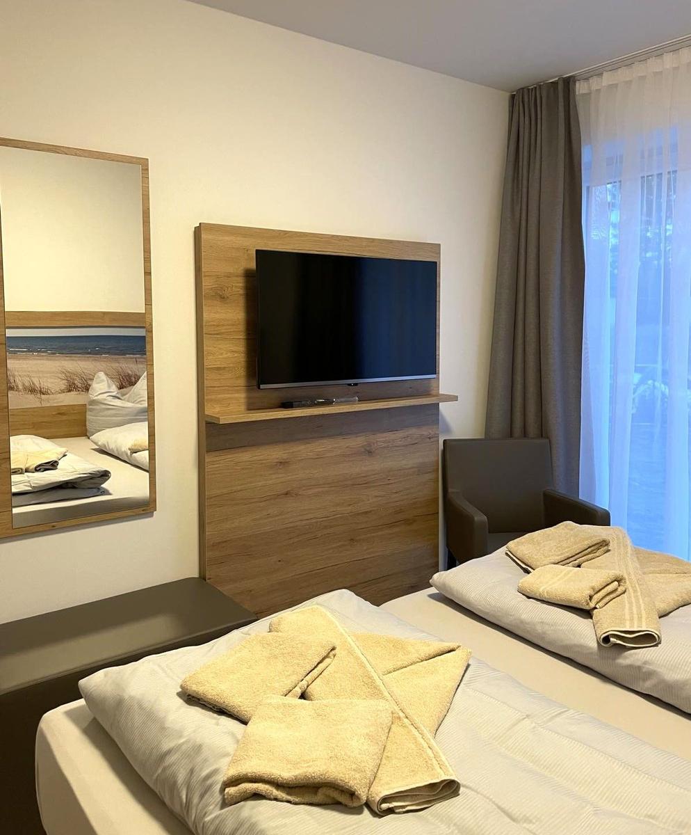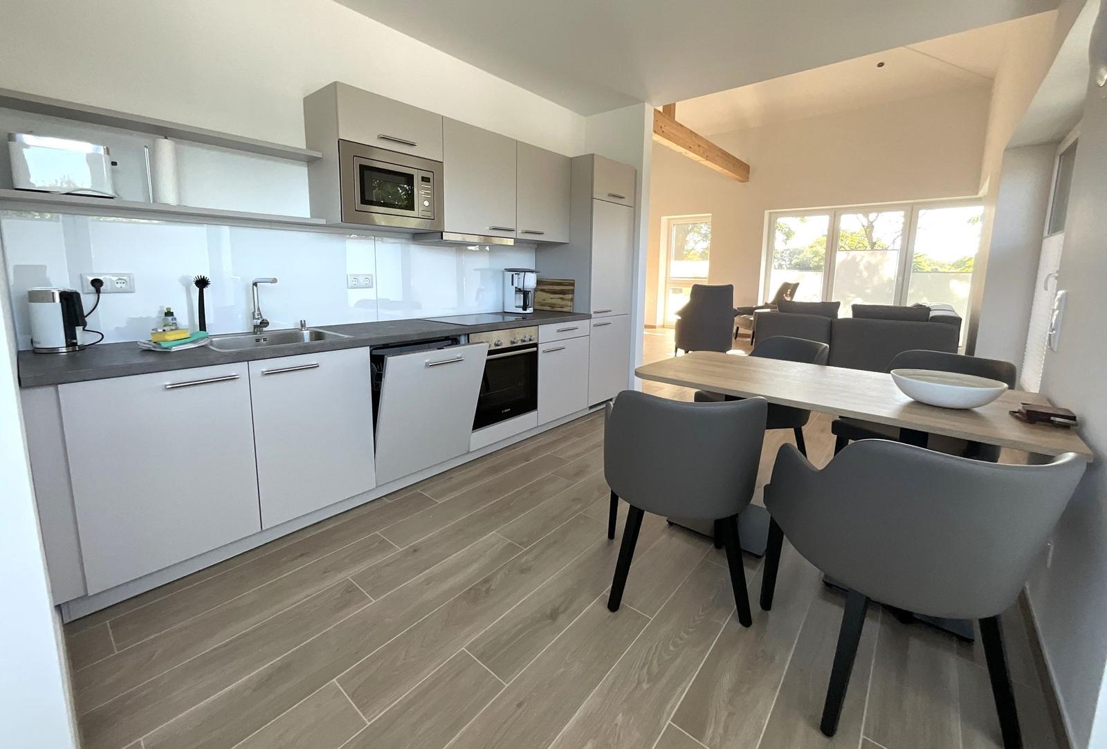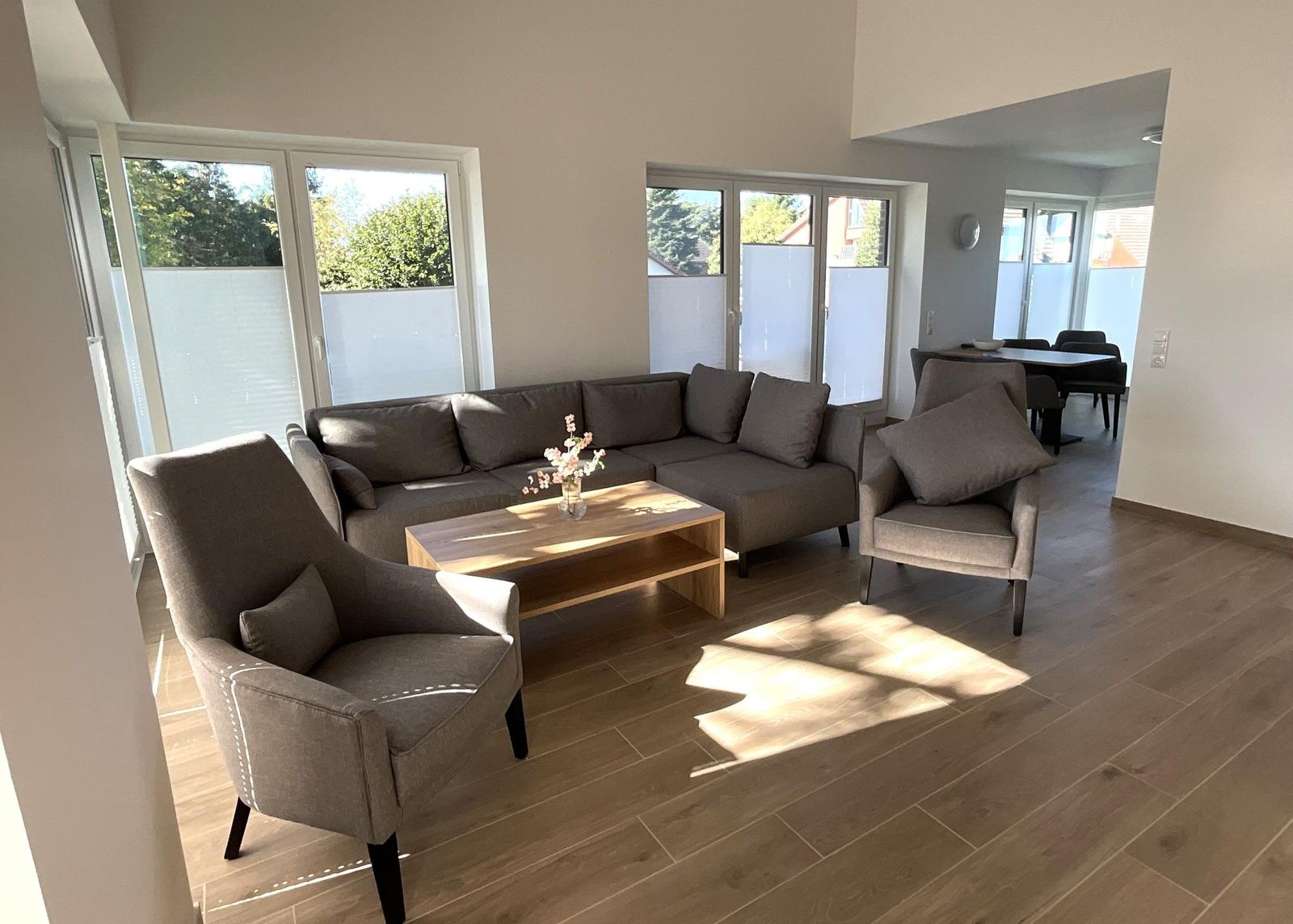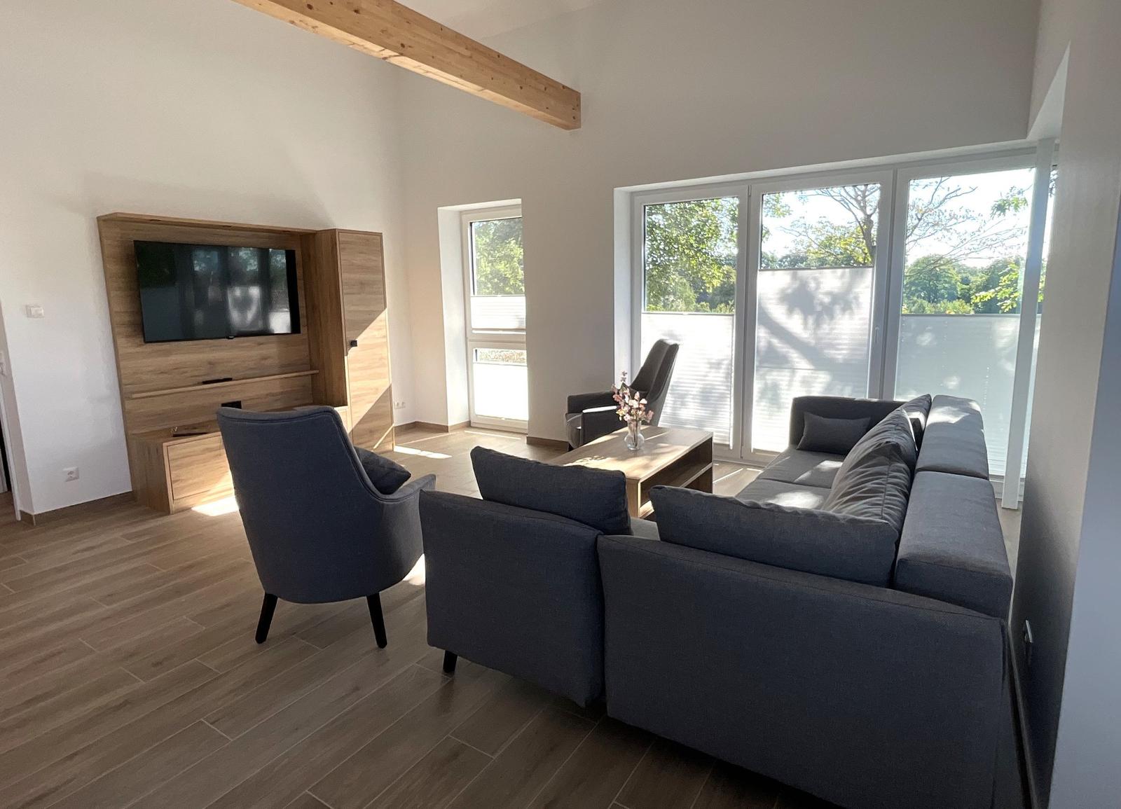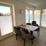 Das Apartment Heimersdorf bietet auf einer großzügigen Fläche von 108 m² modernen Komfort für bis zu vier Personen. Im ersten Obergeschoss eines neu erbauten Gebäudes aus dem Jahr 2024 finden sich zwei Schlafzimmer: ein Zimmer mit einem Doppelbett (180 x 200 cm) und ein zweites mit einem Etagenbett (90 x 200 cm). Der offene Wohn- und Essbereich begeistert mit einer gemütlichen Sitzecke, einem Flachbildfernseher sowie einem großen Esstisch mit vier Stühlen. Die voll ausgestattete Küche umfasst einen Kühlschrank mit Gefrierfach, Ceranherd, Backofen, Mikrowelle und Geschirrspüler. Im hochwertigen Badezimmer erwartet eine bodenebene Dusche, Waschmaschine und Trockner. WLAN steht zur Verfügung, ebenso eine kinderfreundliche Ausstattung, die im Gemeinschaftsraum zu finden ist. Ein Privatparkplatz gehört zur Unterkunft. Haustiere sind erlaubt, maximal ein Hund pro Aufenthalt.