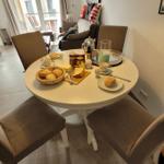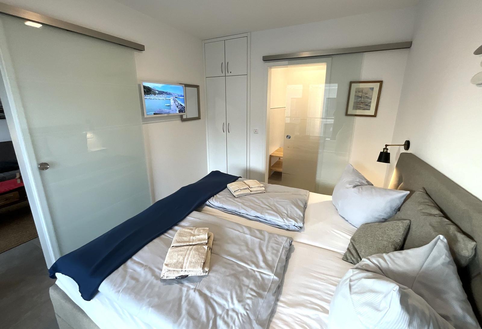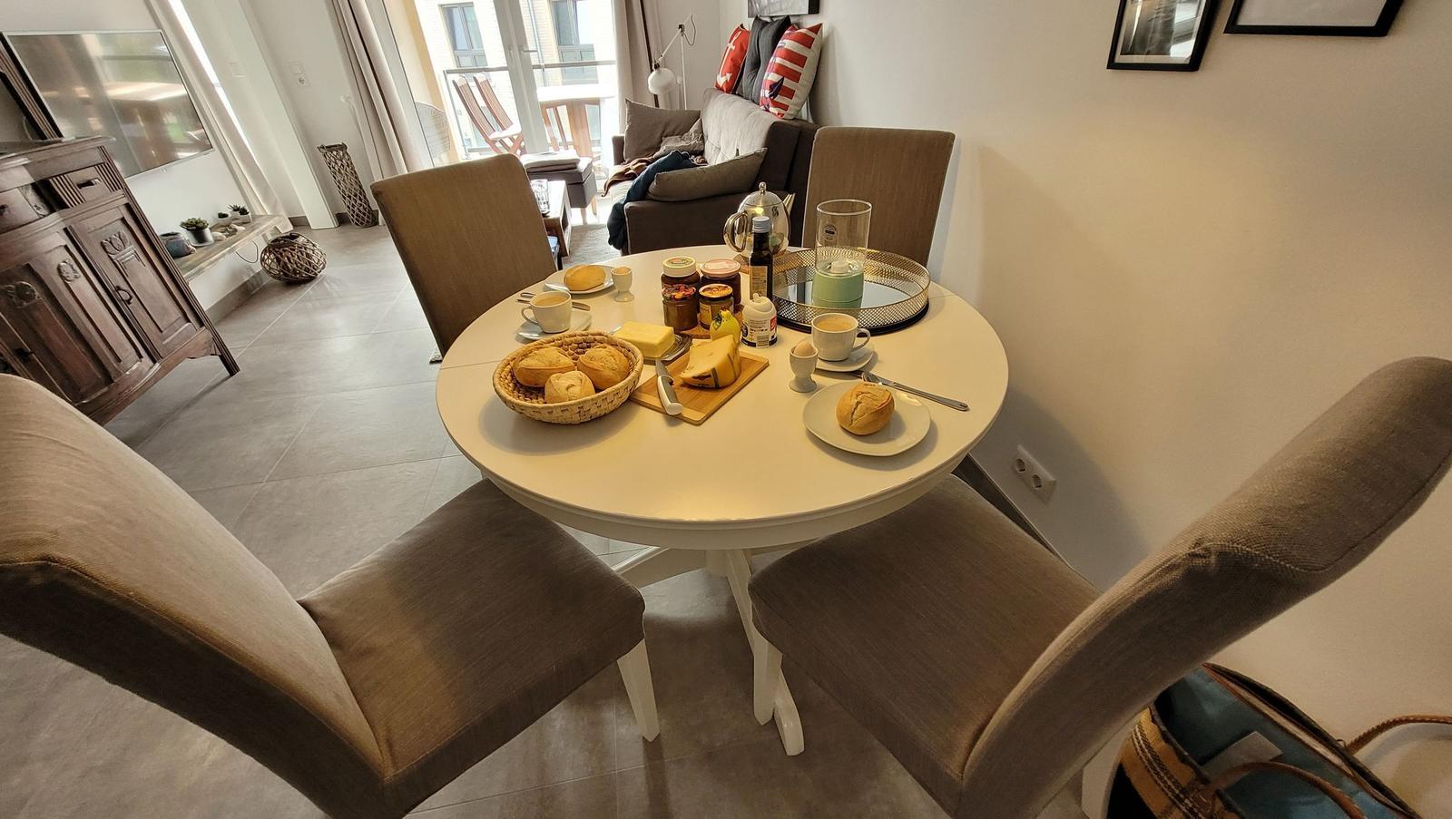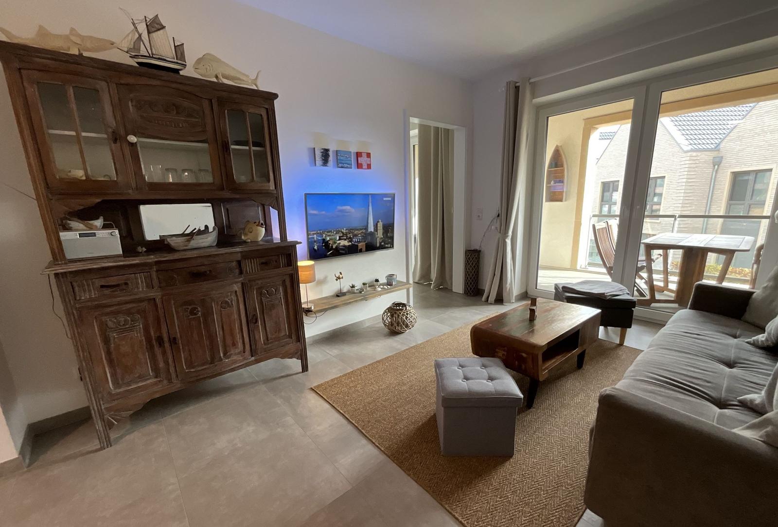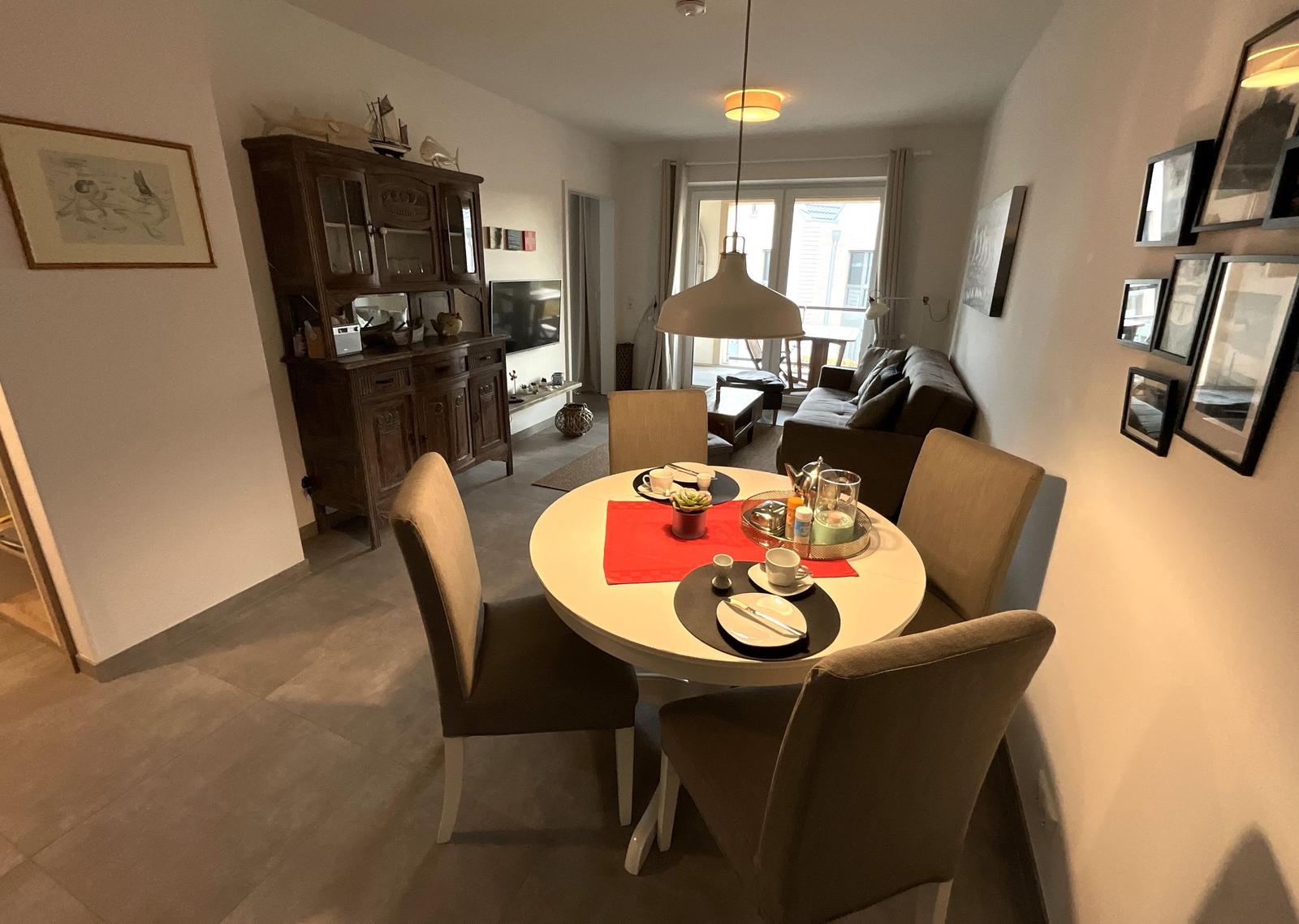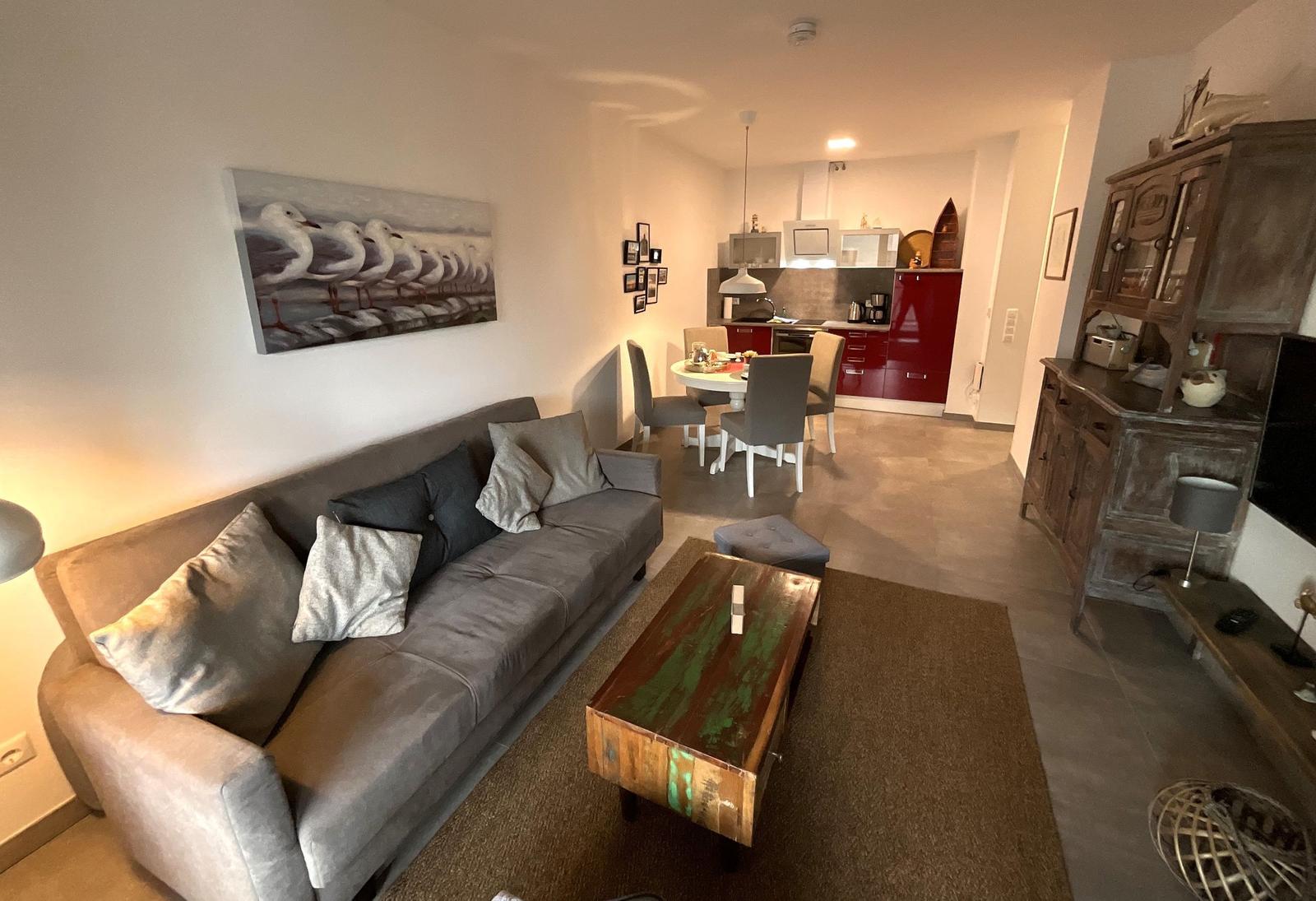 Das Apartment Nordseeliebe beeindruckt mit einem überdachten Balkon, der zu erholsamen Stunden in der frischen Nordseeluft einlädt. Gartenmöbel und ein eigener Strandkorb stehen zur Verfügung, um das maritime Flair optimal zu genießen. Der Balkon ist ideal, um entspannte Abende ausklingen zu lassen oder die Sonne zu genießen. In unmittelbarer Umgebung gibt es zahlreiche Spazier- und Radwege sowie den Sandstrand, der nur 550 Meter entfernt ist. Das Apartment bietet somit eine ausgezeichnete Basis für erholsame Tage an der Nordsee. Weitere Vorteile sind der nahegelegene PKW-Stellplatz und die barrierefreien Zugänge. Haustiere sind ebenfalls willkommen, gegen eine geringe Tagesgebühr. Sichern Sie sich Ihren Aufenthalt in dieser einladenden und ruhigen Unterkunft, die modernes Wohnen in einer ländlichen Umgebung vereint.