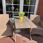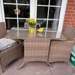 Die offene Küche ist bestens ausgestattet mit einem Elektro-/Gasherd, Geschirrspüler, Backofen und Mikrowelle. Hier stehen auch Kaffeemaschine, Wasserkocher und Toaster bereit. Das Badezimmer mit Duschbad und Haartrockner sorgt für Erfrischung. Für Allergiker geeignet, bietet die Wohnung WLAN-Internet und einen Parkplatz. Familienfreundlich ergänzt ein Kinderhochstuhl die Einrichtung, während eine Waschmaschine und Bügeleisen zusätzlichen Komfort bieten. Brettspiele und ein Sonnenschirm runden das Angebot ab. Genießen Sie entspannte Tage in dieser liebevoll eingerichteten Ferienwohnung.