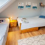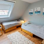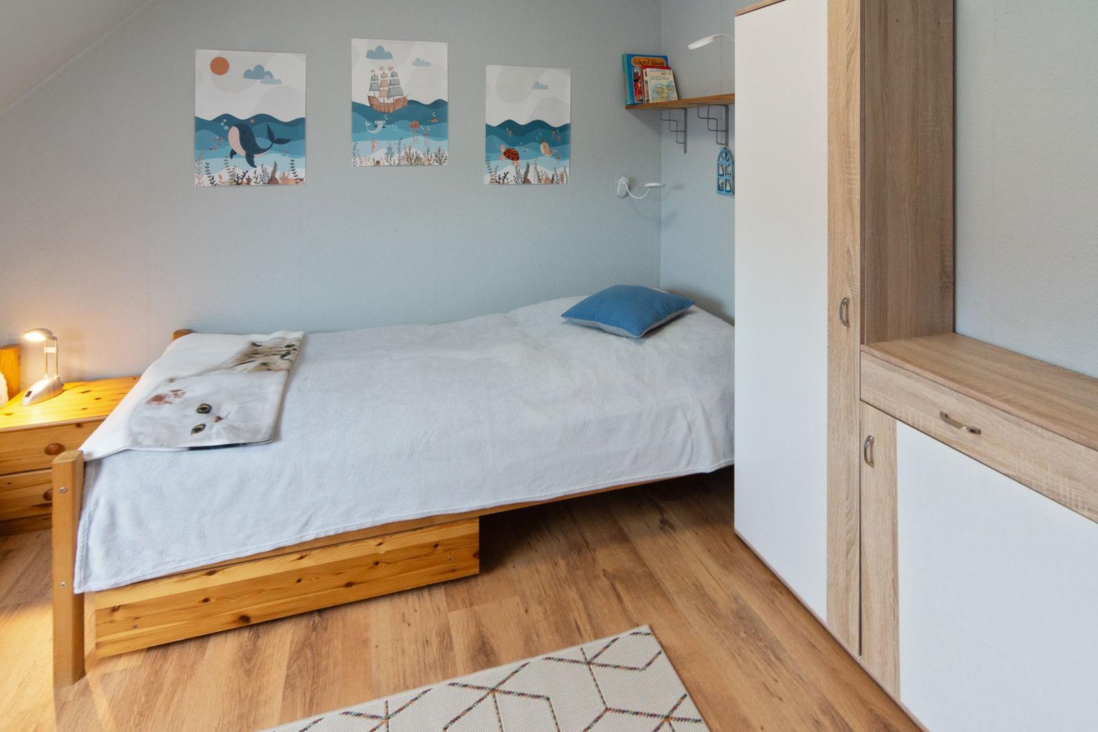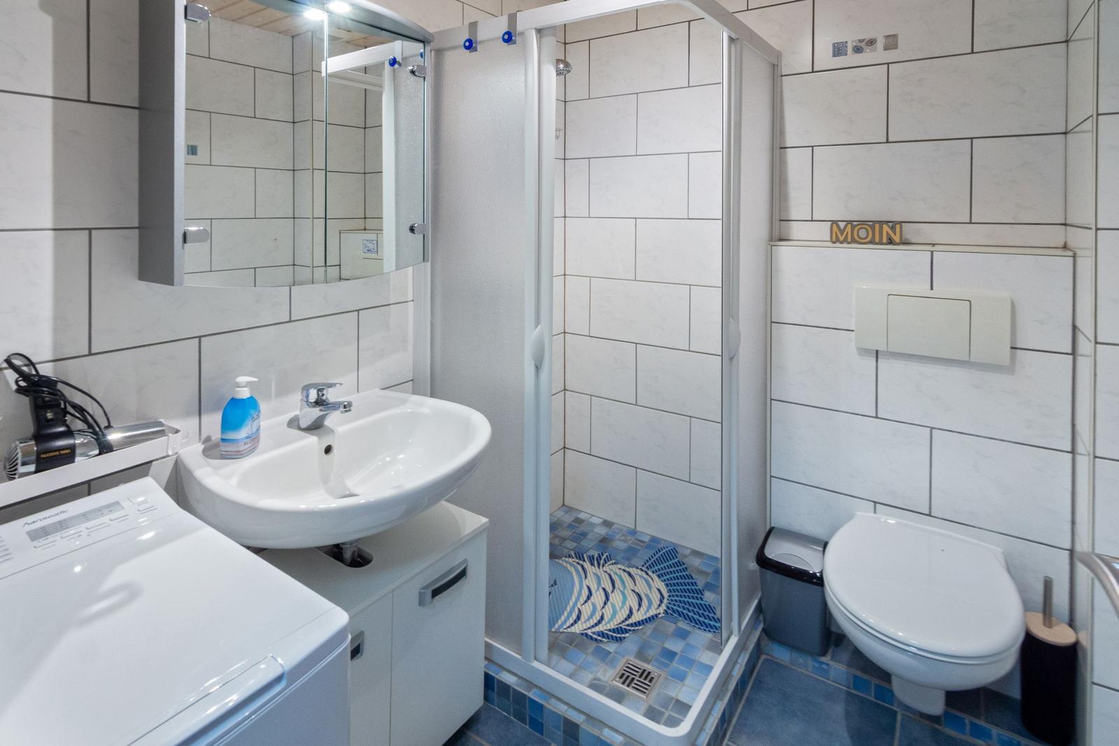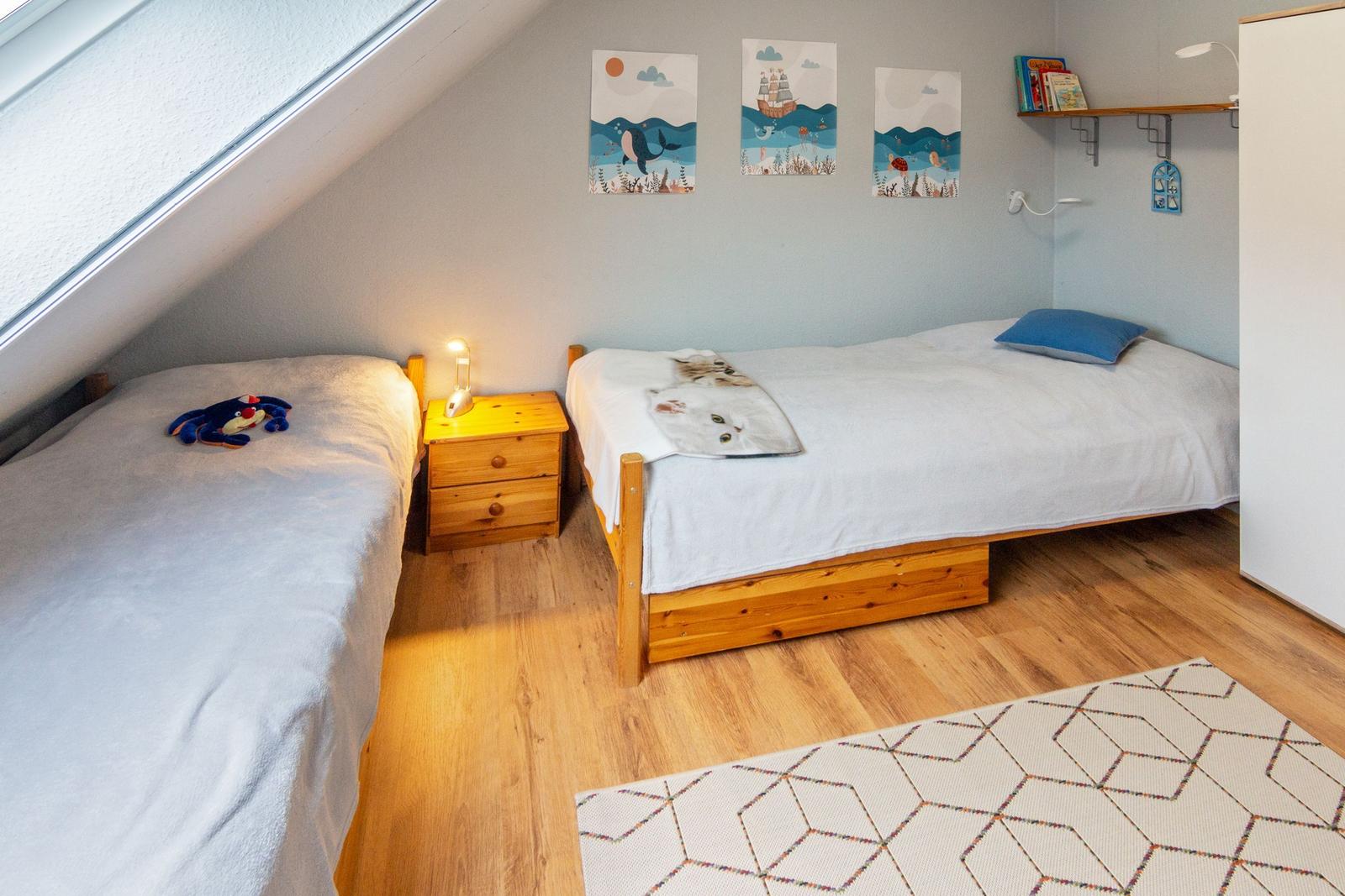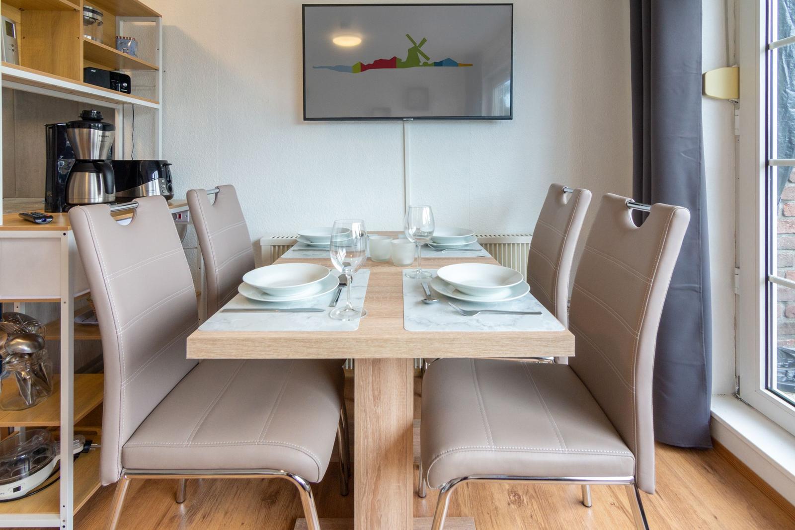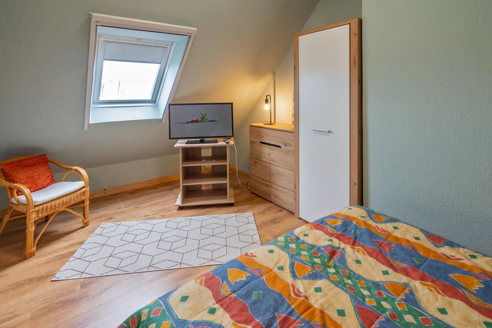 Die gemütliche Ferienwohnung Sünntje erstreckt sich über 56 m² und bietet ein modernes Ambiente für bis zu drei Personen. Sie umfasst drei Zimmer, darunter zwei Schlafzimmer mit Laminatböden; das zweite Schlafzimmer im Dachgeschoss ist über eine enge Treppe erreichbar. Der lichtdurchflutete Wohnbereich ist offen gestaltet und verfügt über eine komfortable Sitzecke sowie einen Essbereich. Die offene Küche ist mit Cerankochfeld, Backofen, Mikrowelle, Kühlschrank mit Gefrierfach, Spülmaschine und sämtlichem Küchenzubehör ausgestattet. Das moderne Badezimmer wurde 2025 renoviert und bietet Dusche, Waschbecken und WC. WLAN steht kostenfrei zur Verfügung. Ein privater Parkplatz ist vorhanden. Haustiere sind nicht erlaubt, was die Wohnung ideal für allergiegeplagte Gäste macht. Die Anreise erfolgt zwischen 15 und 17 Uhr, die Abreise bis 10 Uhr.