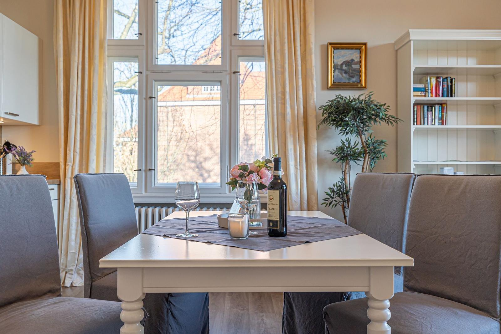 Die Ferienwohnung befindet sich in einer zentralen Lage in Flensburg, nur 300 Meter vom pulsierenden Stadtzentrum entfernt. Diese Umgebung vereint urbanes Leben mit maritimem Charme, untermalt von historischen Gebäuden und einladenden Cafés. Einkaufsmöglichkeiten sind ebenso in unmittelbarer Nähe, nur 300 Meter entfernt. Der malerische Sandstrand ist in 3,4 Kilometern erreichbar und lädt zu entspannten Stunden am Meer ein. Für aktive Urlauber bietet die Region vielfältige Freizeitmöglichkeiten wie Radfahren, Walking, Windsurfen und Bootsausflüge. Kulturell Interessierte finden zahlreiche Museen und Veranstaltungen in der Umgebung, die nur wenige Kilometer entfernt liegen. Die Anreise ist unkompliziert, da die Haltestelle für öffentliche Verkehrsmittel nur 200 Meter entfernt ist. So kann die Umgebung mühelos erkundet werden, während unvergessliche Urlaubsmomente in dieser idyllischen Lage geschaffen werden.