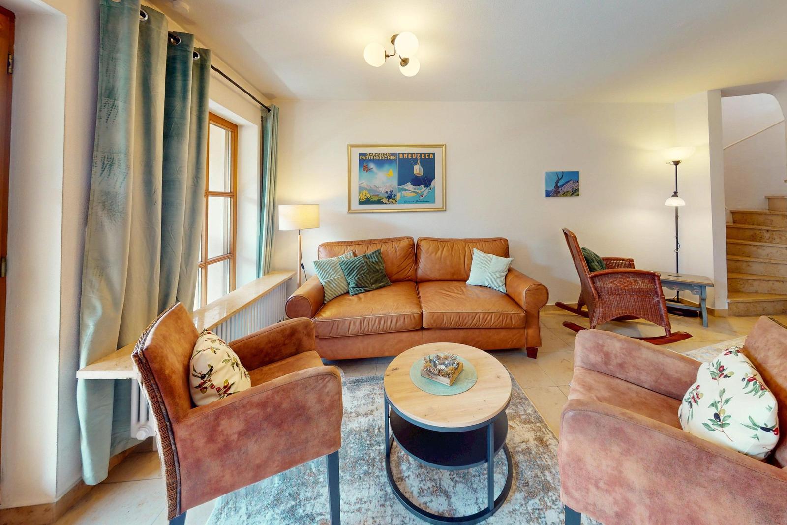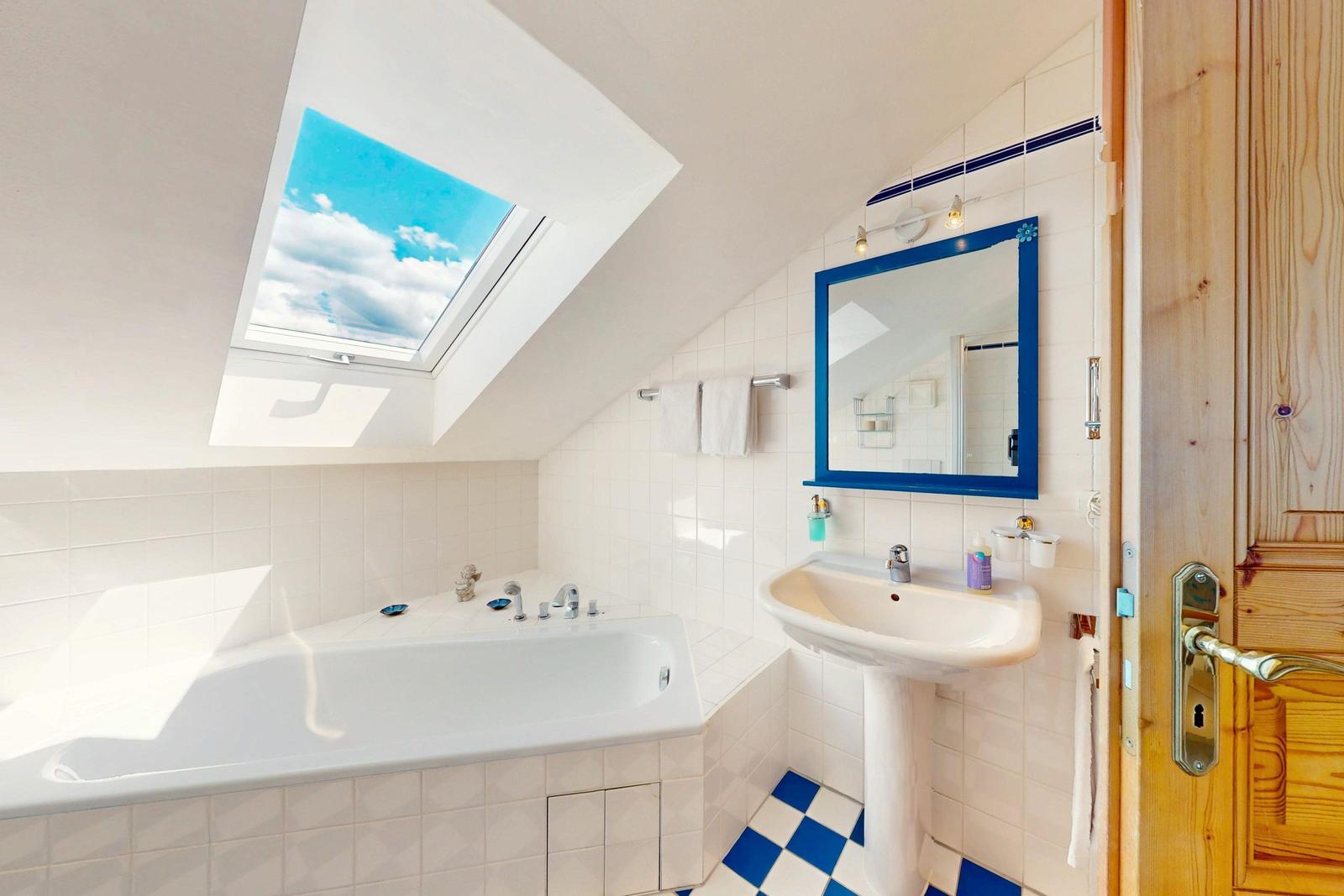 Die Ferienwohnung bietet ein modernes Ambiente und großzügige Räumlichkeiten für einen entspannten Aufenthalt. Sie verfügt über zwei komfortable Schlafzimmer mit je einem Doppelbett und zwei Badezimmer, die mit einer Badewanne und einem Duschbad ausgestattet sind. Die offene Küche lädt zum gemeinsamen Kochen ein und bietet moderne Geräte wie einen Geschirrspüler, Elektro-/Gasherd, Backofen und Kühlschrank, ergänzt durch eine Kaffeemaschine und Toaster. Ein Esstisch ermöglicht gesellige Mahlzeiten. Das Wohnzimmer mit Sofa und Sessel sorgt für Wohlfühlmomente, während der Fernseher für Unterhaltung sorgt. Die Wohnung ist allergikergeeignet und ideal für Familien, denn ein Kinderhochstuhl sowie ein Treppenschutz sind vorhanden. Zudem sorgen WLAN, ein Parkplatz und eine Waschmaschine für zusätzlichen Komfort während des Aufenthalts. Die Ausstattung inkludiert auch Haartrockner, Bügeleisen und Reinigungsmittel. Genießen Sie erholsame Tage in dieser hervorragend ausgestatteten Ferienwohnung.