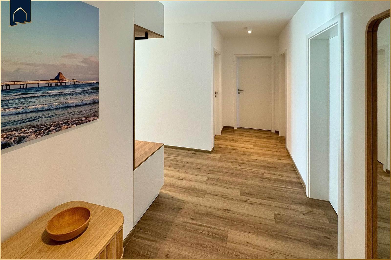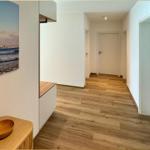 Die Ferienwohnung bietet eine geräumige und moderne Ausstattung, ideal für einen entspannten Aufenthalt. Sie verfügt über zwei komfortable Schlafzimmer mit jeweils einem Doppelbett, sowie zwei elegante Badezimmer, eines mit bodengleicher Dusche und Fenster. Die offene Küche ist mit einem Geschirrspüler, Elektro-/Gasherd, Backofen, Mikrowelle, Kühlschrank und Kaffeemaschine ausgestattet und bietet zusätzlich eine Gefriermöglichkeit und einen Toaster.
