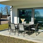 Ein großzügiger Esstisch lädt zu geselligen Mahlzeiten ein. Die Wohnung ist allergikergeeignet und mit Fußbodenheizung sowie einer HiFi-Anlage und TV ausgestattet. Ein Haartrockner, Wäsche- und Geschirrwäsche sowie ein Staubsauger sind ebenfalls vorhanden. Der Aufzug und der Parkplatz sorgen für zusätzlichen Komfort. Dazu gibt es Fliegengitter für angenehme Nächte. WLAN ist selbstverständlich vorhanden. Ideal für Familien oder Gruppen, die eine hochwertige Unterkunft suchen.